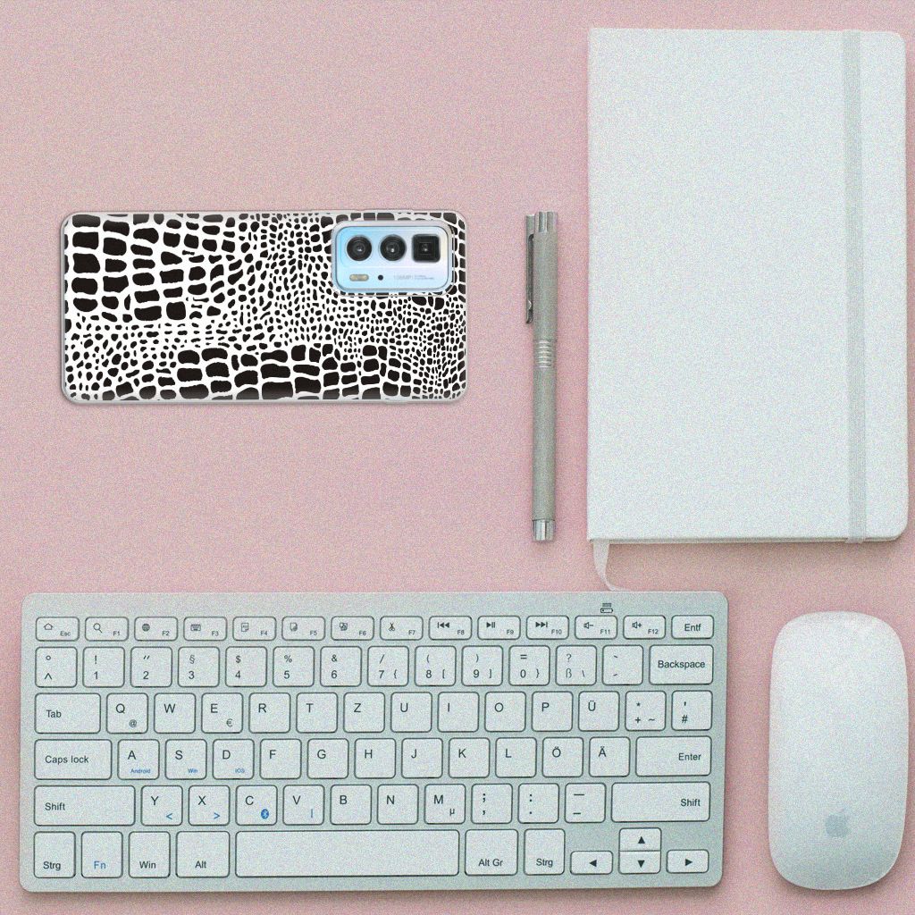 Deze tpu case met zwarte en witte Slangenprint kunnen wij zeer exclusief noemen. Zeker als je er nog een bijzondere tekst van jezelf aan toevoegt, zoals je eigen naam in een sierletter. Jouw tpu case krijgt dan een persoonlijke uitstraling, net nog een beetje specialer dan dit hoesje met zwarte en witte slangenprint. Wat niets afdoet van de exclusiviteit van deze tpu case met zwarte en witte slangenprint. Ben jij toe aan een stoer en opvallend Motorola Edge 20 Pro TPU Hoesje? Pak dan dit design met print van slangenhuid als basis. Het tpu hoesje is zeer flexibel en wordt alleen aan de bovenzijde bedrukt. De randen van dit flexibele hoesje blijven doorzichtig. Jij bent ervan verzekerd dat jouw smartphone tegen een stootje kan met dit tpu hoesje met zwarte en witte slangenprint.