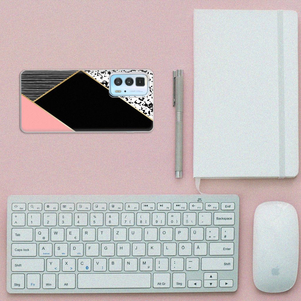 TPU Hoesje Motorola Edge 20 Pro Zwart Roze Vormen Design
