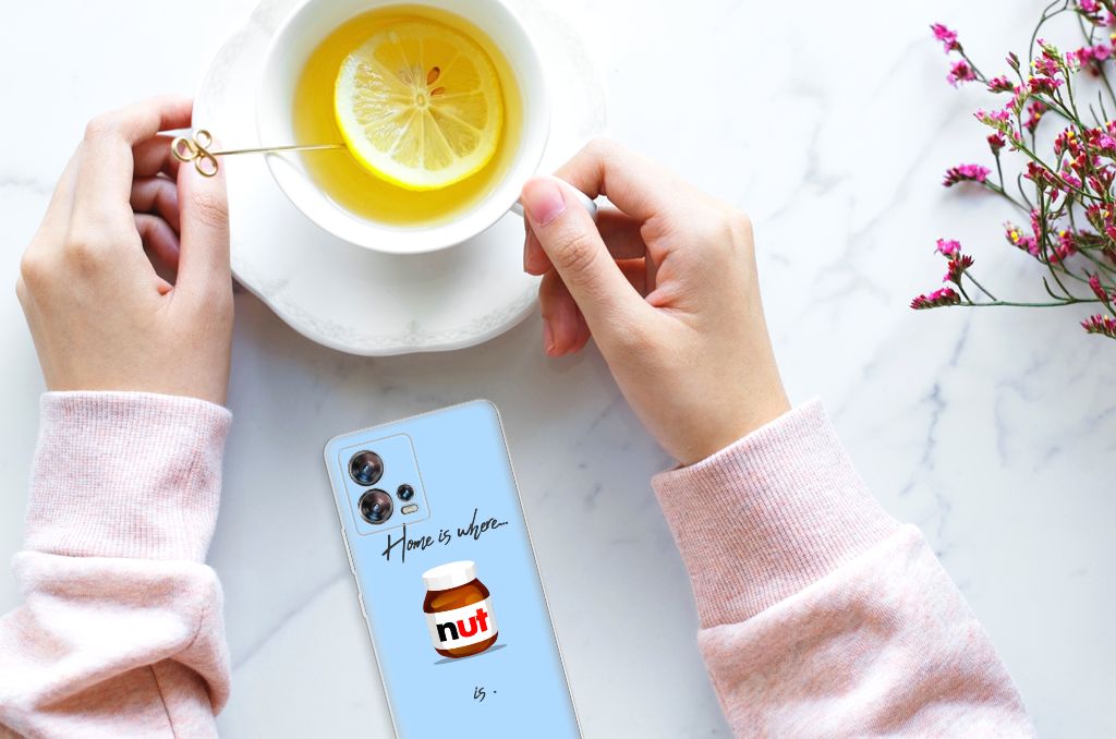 Ben je liefhebber van chocoladepasta, dan is dit het perfecte Motorola Edge 30 Fusion Siliconen Case voor jou. De chocoladepasta is enorm populair, dus is het niet zo heel gek dat je een ‘Nut Home’ tpu case in een blauwe kleur aantreft in ons assortiment design hoesjes met illustraties. Dit tpu hoesje is zeer flexibel en past altijd in je broekzak. Alleen de bovenkant van dit hoesje wordt door ons bedrukt in blauwe kleur met de pasta, op zeer duurzame manier. Mensen die houden van de bekendste pasta van het moment, kiezen voor deze blauwe tpu case. Er staan geen illustraties op de zijkanten van een tpu case. Je kunt ook een eigen tekst toevoegen aan het opvallende design.