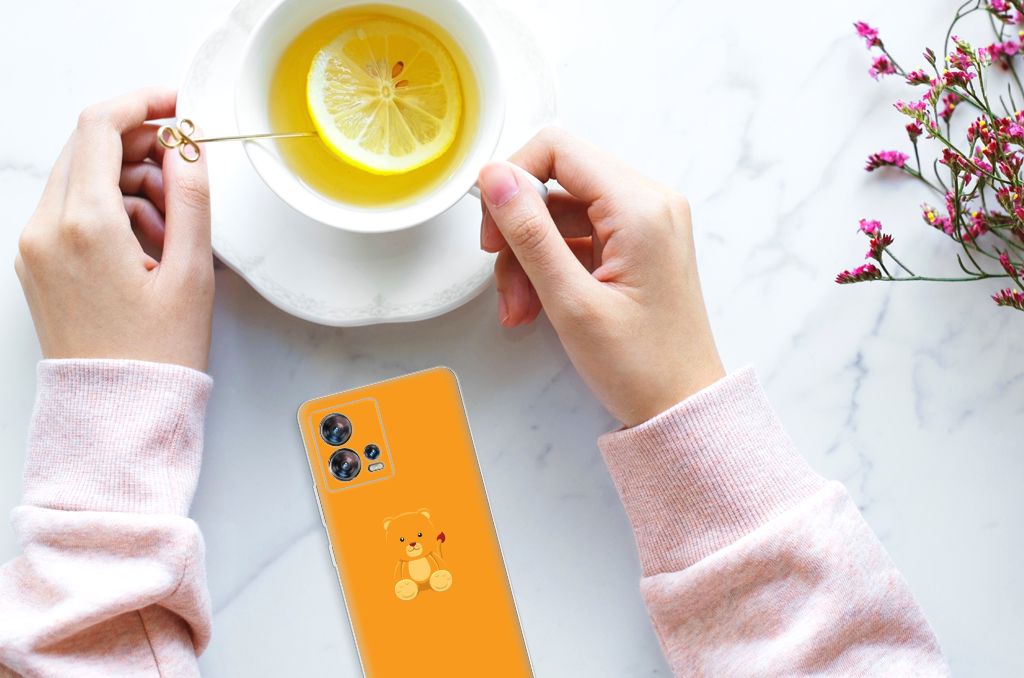 Dit vrolijke teddybeertje zou je het liefst willen knuffelen. Dat wordt lastig, op een telefoonhoesje. Maar dat betekent niet dat dit design niet evengoed onwijs schattig is. Het ontwerp is vanwege de oranje achtergrondkleur evengoed subtiel. Dit Baby Beer-design is perfect voor de knuffelberen onder ons. Dit design staat op een Telefoonhoesje met Naam voor je Motorola Edge 30 Fusion. TPU is flexibel en onbreekbaar. Zo is je telefoon aan de achterkant en de randen heel goed beschermd. De case is aan de bovenkant bedrukt, de randen blijven transparant. Het TPU-hoesje is perfect te combineren met een screenprotector, zo zijn je telefoon en je beeldscherm perfect beschermd.