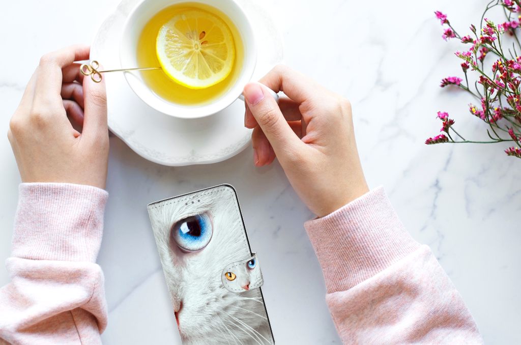 Witte katten zijn erg bijzonder en dat is precies de reden dat wij deze op prominente wijze op dit design hoesje hebben geplaatst. Maar deze witte kat is extra speciaal, doordat de ogen twee verschillende kleuren hebben: blauw en vurig rood. Hiermee heb jij als uniek mens ook een unieke bookcase. Ook de manier waarop dit telefoonhoesje voor de Motorola Edge 30 Neo is bedrukt, is bijzonder. Je ziet namelijk een kleinere versie van dezelfde kat terug op het lipje. Hierdoor zie je de speciale witte kat twee keer terugkomen op jouw hoesje. Omdat je waarschijnlijk een dierenliefhebber bent als je dit Telefoonhoesje met Pasjes uitkiest, is dit ook een erg duurzaam hoesje. Het hoesje wordt aan alle kanten met duurzame inkt bedrukt.
