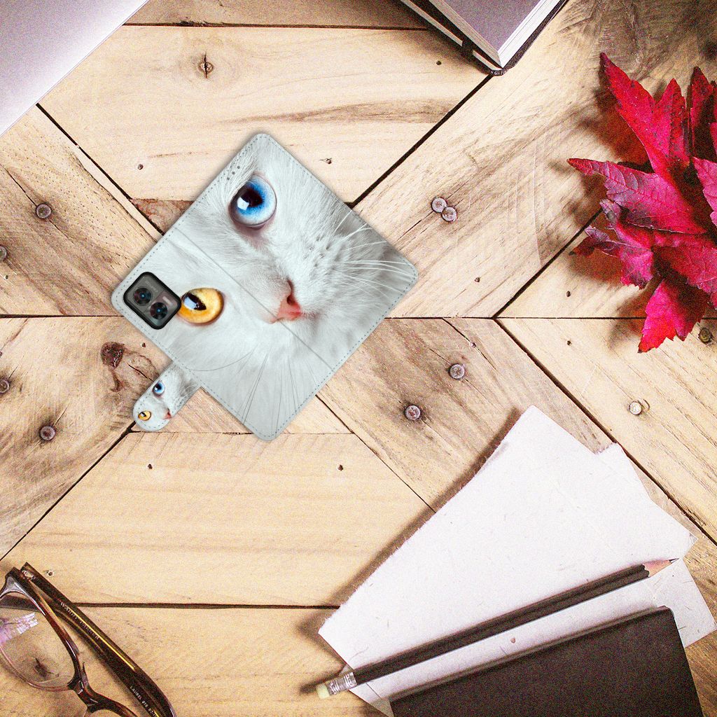 Motorola Edge 30 Neo Telefoonhoesje met magnetisch lipje als sluiting Witte Kat
