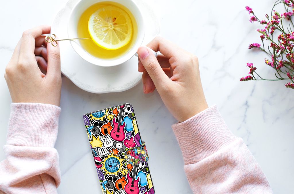 Motorola Edge 30 Neo Walletcase met magnetisch lipje als sluiting Punk Rock