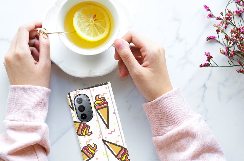 Een vrolijke Motorola Edge 30 Pro Flip Style Cover met daarop verschillende ijsjes. Als je daar geen zomers gevoel meer van krijgt, weten wij het ook niet meer. De zomer en ijsjes zijn onlosmakelijk met elkaar verbonden. Tijdens een bezoekje aan het strand mag een lekker ijsje bijvoorbeeld niet ontbreken. Een design hoesje met lekkere Icecream print past daar natuurlijk ook ontzettend goed bij. Jouw telefoon is helemaal beschermd met een stand case met ijsjes design. De aankoop van deze case is een heerlijke investering, die zich gegarandeerd terugbetaalt. Alle zijden van dit hoesje worden bedrukt met ijsjes. De case heeft een speciale standaard en de houder aan de binnenzijde is van TPU. Onder alle weersomstandigheden zal deze case met opbergvakje perfect functioneren, ook in de zomer met een ijsje in je hand. Dit smaakvolle hoesje is zeer goedkoop te bestellen en wordt zeer snel bezorgd.