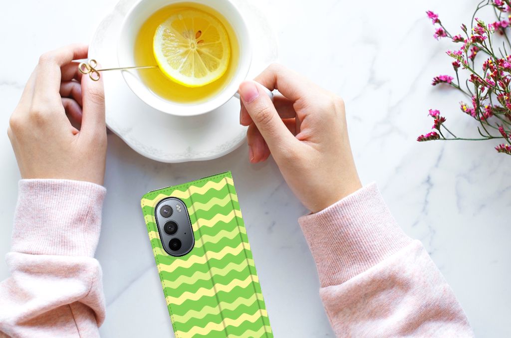Dit groene design hoesje met groene golven is speciaal ontworpen voor jouw telefoon. We hebben een vleugje geel toegevoegd, zodat er sprake is van variatie. Dit Waves Green hoesje ziet er flitsend uit. Dat kan ook niet anders, als je weet dat we veel energie steken in het bedenken van originele designs. Een heel strak Motorola Edge 30 Pro Hoesje met Magneet, met zeer veel opties. Past dit groene design hoesje met golven goed bij jou? Bestel het dan vandaag nog, tegen zeer lage kosten. Het design staat op een stand case. Deze case met groene golven beschermt jouw telefoon aan alle kanten en beschikt over een 1 opbergvakje en een speciale standaard. Het hoesje wordt afgesloten met een magneet aan de binnenzijde. De houder aan de binnenzijde is van TPU. Alle zijden van de stand case worden bedrukt.