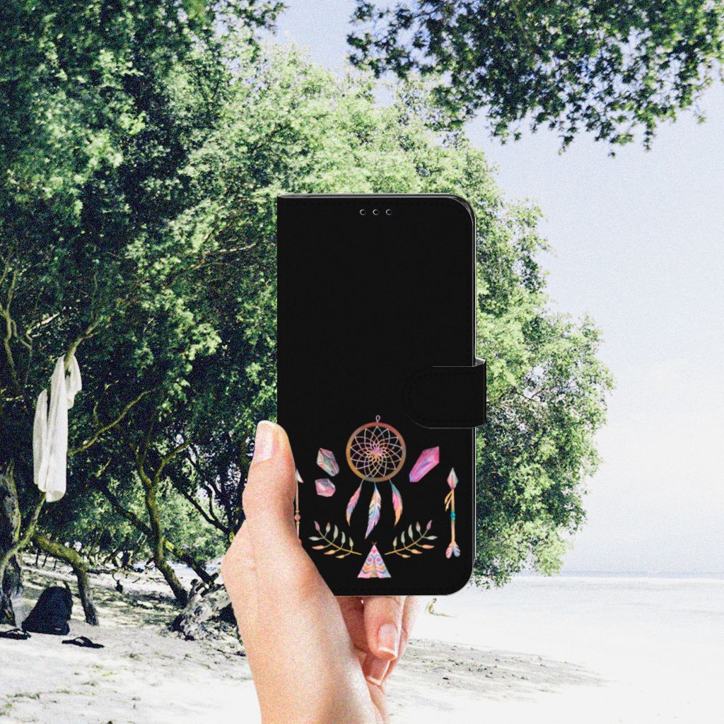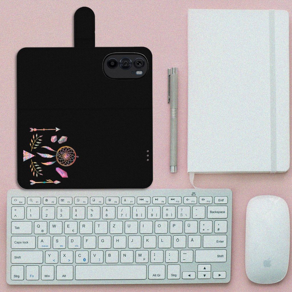 Een dromenvanger werd lang geleden al door een indianenvolk in Noord-Amerika gebruikt om nare dromen te weren. Nu nog hangen mensen over de hele wereld dromenvangers boven hun bed. Maar ook op een telefoonhoesje staat zo’n boho dreamcatcher heel mooi. Dit mooie design dat bestaat uit een tipi, pijlen en dromenvanger heeft veel verschillende prachtige kleuren. Maar omdat het ontwerp minimalistisch en klein is, is het design toch subtiel te noemen. Met dit Leuk Hoesje voor de Motorola Edge 30 Pro heb je al je belangrijkste bezittingen bij de hand. Binnenin zit namelijk een pasjeshouder voor twee pasjes. Daar bewaar je je belangrijkste (bank)passen in en je briefgeld. En uiteraard is je telefoon ook goed beschermd tegen krassen en beschadigingen.