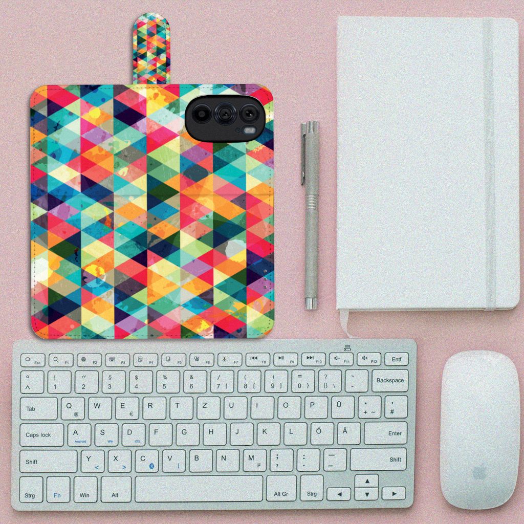 Dit design hoesje bestaat uit ruitjes in alle kleuren van de regenboog, wat inderdaad een beetje druk is, en waar je echt een liefhebber van moet zijn. Feit is dat dit hoesje zeker opvalt en als je daarvan houdt, is dit het perfecte Telefoon Hoesje voor jou! Daarnaast is dit Motorola Edge 30 Pro hoesje een bookcase, wat inhoudt dat jouw telefoon aan alle zijdes beschermd is. En deze bookcase is ook nog eens aan alle kanten bedrukt, zodat het wel mooi blijft, zelfs het lipje van het hoesje is bedrukt met het ruitjes patroon. De buitenkant van dit designhoesje is gemaakt van PU-leer. De binnenkant daarentegen is gemaakt van TPU wat de telefoon goed beschermt in het geval dat hij op de grond zou vallen. Ook kun je jouw pasjes allemaal kwijt in dit hoesje zodat jij al jouw belangrijke bezittingen bij de hand hebt.