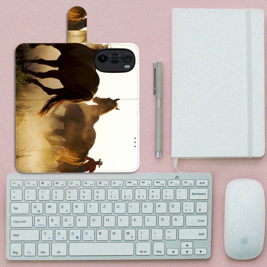 Voor de paardenliefhebbers onder ons hebben we onze collectie uitgebreid met dit design hoesje met print van een cowboy met paarden. Vroeger hield de mens vooral werkpaarden, inmiddels hebben we vriendschap gesloten met het paard. Vandaar dat het ook een favoriet dier is op onze smartphonehoesjes, zoals deze boekhoesjes. Dit Telefoonhoesje met Pasjes met paarden is niet alleen super mooi en chique, het sluit ook nog perfect dankzij het lipje aan de buitenzijde. Verder heeft de case een TPU houder aan de binnenzijde en houders voor pasjes en briefgeld. Zie je liever je eigen paard terug op een hoesje voor jouw Motorola Edge 30 Pro? Dat kan! Door zelf een uniek hoesje te ontwerpen, met eigen foto’s en teksten. Het boekhoesje met paarden wordt aan alle zijden bedrukt.