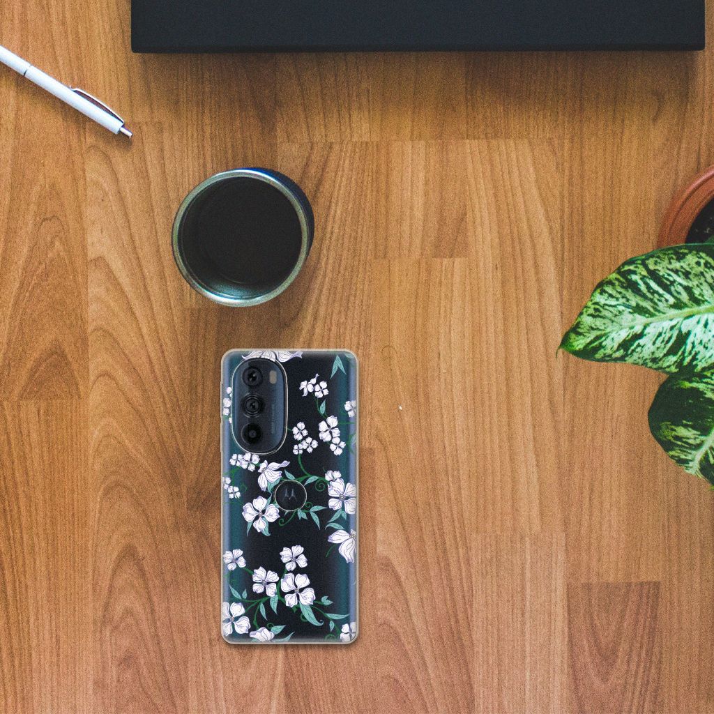 Witte bloemen staan voor puurheid, frisheid, helderheid en eenvoud. Geen wonder dus dat ze al heel lang populair zijn en ook prachtig staan op een telefoonhoesje. Niet iedereen houdt immers van kleurrijke designs. Toch graag bloemetjes op je TPU Case maar zonder bonte kleuren? Dan is dit hoesje voor de Motorola Edge 30 Pro perfect voor jou. TPU is flexibel en heel erg sterk. Zo is je telefoon aan de achterkant en de randen heel goed beschermd. De case is aan de bovenkant bedrukt, de randen blijven transparant. Het TPU-hoesje is perfect te combineren met een screenprotector, zo zijn je telefoon en je beeldscherm altijd goed beschermd.