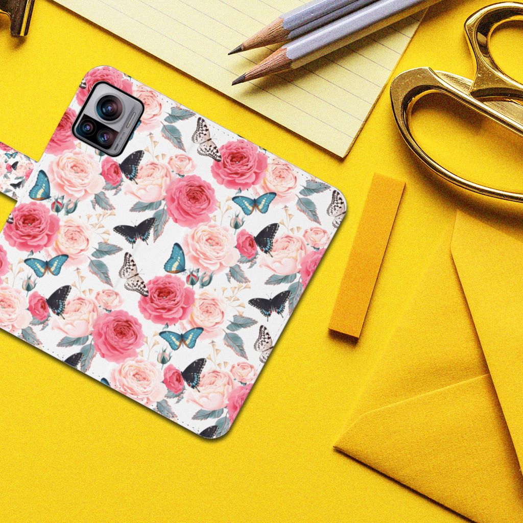 Motorola Edge 30 Ultra Hoesje gemaakt van TPU en kunstleer Butterfly Roses