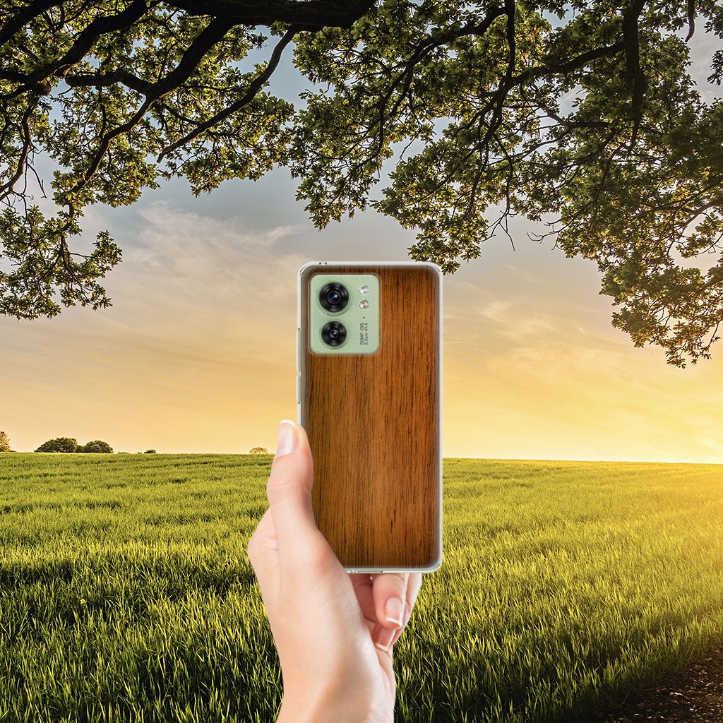 Raak je enthousiast van hout in de constructie van huizen, meubelen, vloeren, kozijnen, dakconstructies en voor de afwerking? Dan voel jij je uitstekend op je gemak met dit design hoesje met print van Donker Hout. Deze print staat op een TPU case, die jouw telefoon vooral aan de achterkant en zijkanten zeer goed beschermt. Een Motorola Edge 40 Bumper Hoesje is zeer flexibel. Maar daar blijft het niet bij. Dit flexibele hoesje met houten print past altijd in je broekzak. Een belangrijke hoofdeigenschap van hout is duurzaamheid (bijvoorbeeld tegen weersinvloeden en schimmels). Dit design hoesje, waarvan de randen transparant zijn gebleven, is tevens zeer duurzaam.
