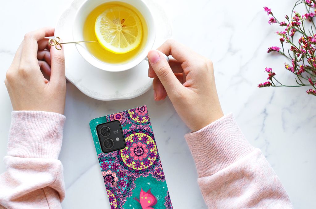 Deze opvallende Motorola Edge 40 Neo Bookcase met Cirkels en Vlinders is een ware eyecatcher. De meeste vlinders hebben een onopvallende vleugelkleur en dat kun je van de soort op dit hoesje ook zeker wel zeggen. Wij kunnen deze opvallende vlinders en cirkels op een zeer handige stand case zetten. Deze hoesjes zijn zeer gewild. Met onze geavanceerde printer zetten we de print van opvallende vlinders en cirkels op alle zijden van het hoesje. De case met vlinders heeft aan de binnenkant een houder waarin je jouw creditcard of ander pasje kwijt kunt. De case heeft bovendien een handige standaard. Verder is je telefoon natuurlijk maximaal beschermd met deze stand case met print van opvallende en kleurrijke vlinders. De houder aan de binnenzijde van het design hoesje met opvallende vlinder print is van TPU.