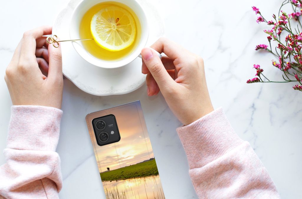 Het levert een idyllisch plaatje op, dit hoesje met een koe en ondergaande zon op de achtergrond. Door een koe buiten te laten lopen en grazen, hebben ze minder kans om ziek te worden. De Koe graast het liefst met soortgenoten, al zijn deze een stukje van de koe op de case verwijderd. Dit levert ook een mooi plaatje op, zoals je kunt zien op dit design hoesje. Deze stand case ziet er strak uit en is voorzien van verschillende uitsparingen. Een Motorola Edge 40 Neo Hoesje maken met magneet aan de binnenzijde beschermt jouw smartphone overal. Alle zijden zijn bedrukt. Koeien hebben lange graasperioden nodig, afgewisseld door rust- en herkauwperioden. Zo goed als grazen voelt voor koeien, zo lang zal jouw design hoesje meegaan. De binnenkant van de stand case is van TPU, de buitenzijde van leer.
