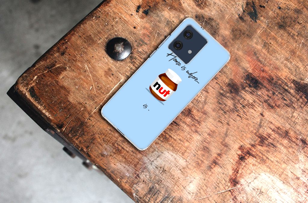 Ben je liefhebber van chocoladepasta, dan is dit het perfecte Motorola Edge 40 Neo Siliconen Case voor jou. De chocoladepasta is enorm populair, dus is het niet zo heel gek dat je een ‘Nut Home’ tpu case in een blauwe kleur aantreft in ons assortiment design hoesjes met illustraties. Dit tpu hoesje is zeer flexibel en past altijd in je broekzak. Alleen de bovenkant van dit hoesje wordt door ons bedrukt in blauwe kleur met de pasta, op zeer duurzame manier. Mensen die houden van de bekendste pasta van het moment, kiezen voor deze blauwe tpu case. Er staan geen illustraties op de zijkanten van een tpu case. Je kunt ook een eigen tekst toevoegen aan het opvallende design.
