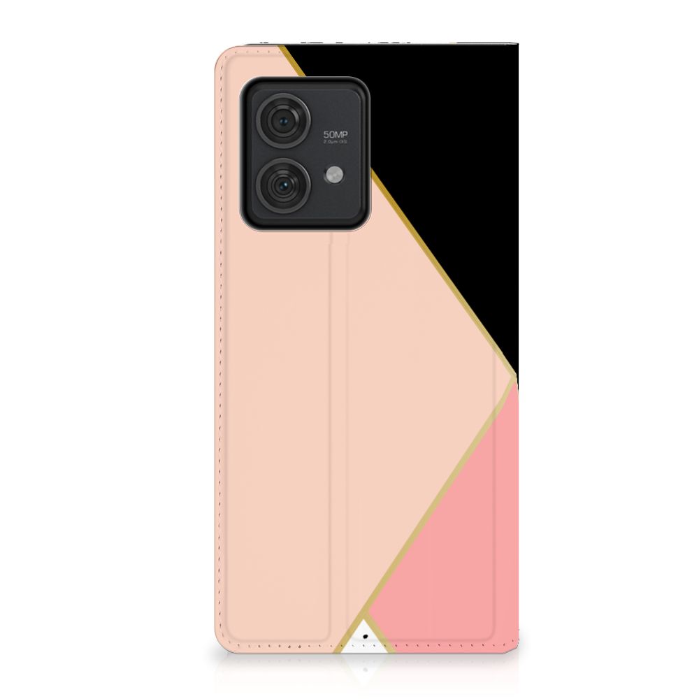 Motorola Edge 40 Neo Print Stand Case Zwart Roze Vormen