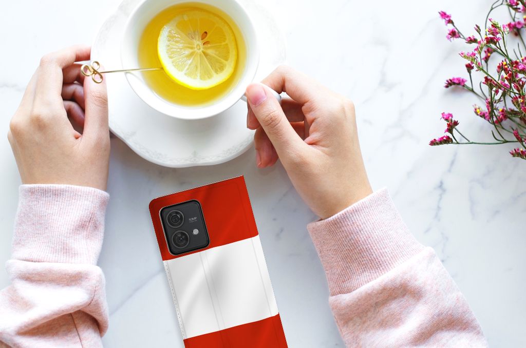 Vroeger werden vlaggen gebruikt om een boodschap over te brengen of een ridderorde aan te duiden. Tegenwoordig worden vlaggen gebruikt voor verschillende doeleinden. Een vlag kan worden gebruikt om te verwijzen naar een land, stad of beweging. Het staat symbool voor de nationaliteit van de mens. In onze collectie hebben wij alle Europese vlaggen opgenomen. De vlag wordt gedrukt op een Standcase voor de Motorola Edge 40 Neo en heeft een vakje voor pasjes. Het fijne aan dit hoesje is dat je het horizontaal als standaard neer kunt zetten. Door de magneten aan de binnenkant wordt het hoesje afgesloten. Ook bieden wij de mogelijkheid om gratis je naam toe te voegen om het hoesje helemaal af te maken. Wil je meer vrijheid om het hoesje helemaal naar eigen wens te maken? Ga dan verder met ontwerpen in ons unieke ontwerpprogramma.
