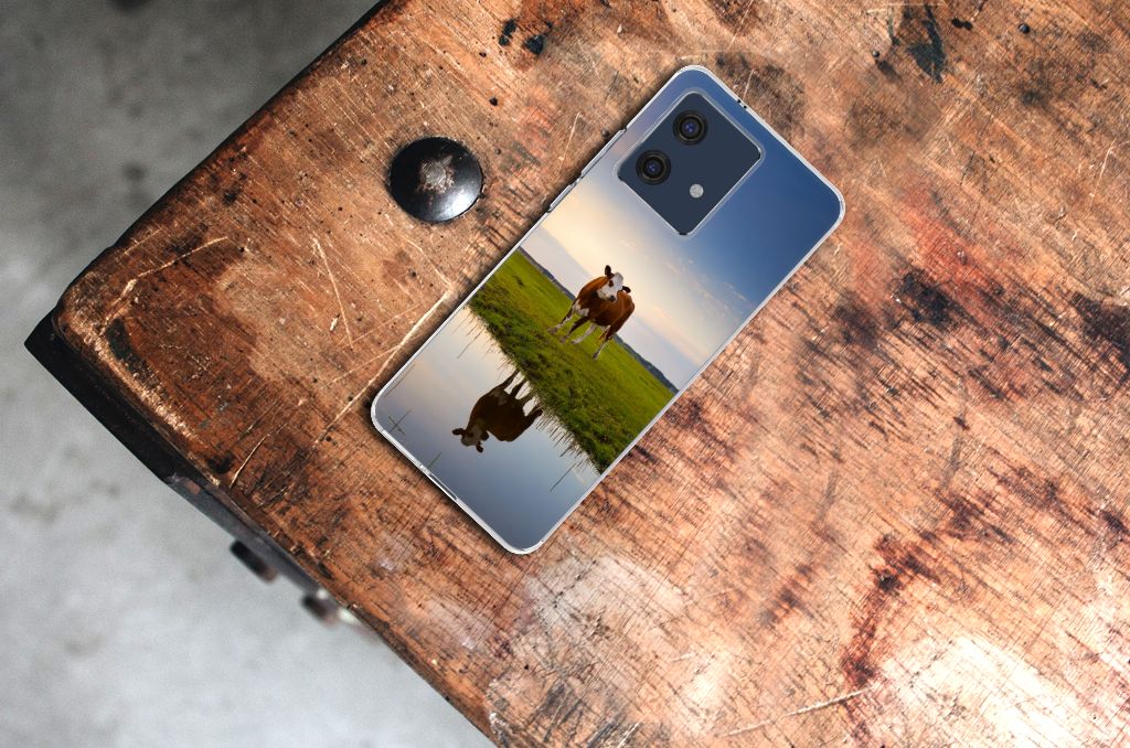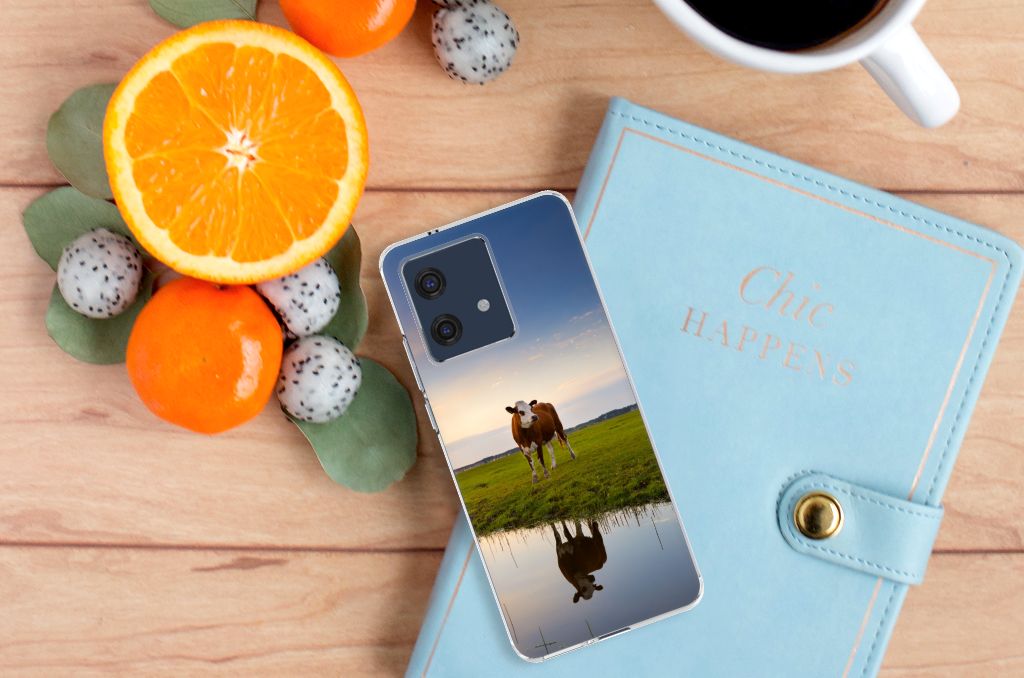 Het levert een idyllisch plaatje op, dit hoesje met een koe en ondergaande zon op de achtergrond. Door een koe buiten te laten lopen en grazen, hebben ze minder kans om ziek te worden. De Koe graast het liefst met soortgenoten, al zijn deze een stukje van de koe op de case verwijderd. Dit levert ook een mooi plaatje op, zoals je kunt zien op dit design hoesje. Dit tpu hoesje met koeien ziet er flexibel uit en is voorzien van alle uitsparingen. Een Motorola Edge 40 Neo TPU Hoesje met koeien beschermt jouw smartphone vooral aan de achterkant en zijkanten. De zijkanten blijven transparant, de rest van het hoesje is bedrukt. Koeien herkauwen het liefst liggend, behalve wanneer het regent. Zo goed als grazen voelt voor koeien, zo duurzaam zal jouw smartphone blijven met dit design hoesje. Het TPU is schokabsorberend en niet te breken. De TPU case past altijd in je broekzak.