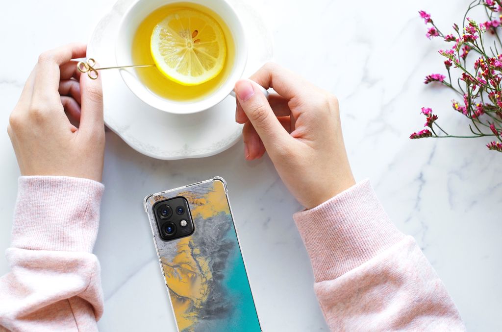Ben je op zoek naar een uniek telefoonhoesje voor je Motorola Edge 40 Pro? Dan ben je bij B2C Telecom aan het juiste adres! Speciaal voor jou hebben we dit prachtige Marble Blue Gold design in onze collectie hoesjes opgenomen. Het design wordt bedrukt op een Anti-Shock Hoesje en is gemaakt van flexibel rubber. Het hoesje is perfect voor de actieve smartphonegebruiker door de opstaande randen/hoeken. Denk aan mensen die veel sporten, reizen of wandelen en net iets meer zekerheid willen als het op hun geliefde telefoon aankomt. Het design wordt alleen aan de bovenkant van het hoesje bedrukt en de randen blijven transparant. Aan de zijkanten zijn uitsparingen gemaakt waardoor je met gemak alle knoppen en poorten kunt bedienen. Wij adviseren om dit hoesje in combinatie met een screenprotector te gebruiken voor een langere levensduur van je telefoon. Wil je dit hoesje nog iets extra's geven? Voeg dan gratis je naam of een quote toe! Is dit design hoesje toch niet helemaal wat je zocht? Ontwerp dan zelf een hoesje in ons ontwerpprogramma.