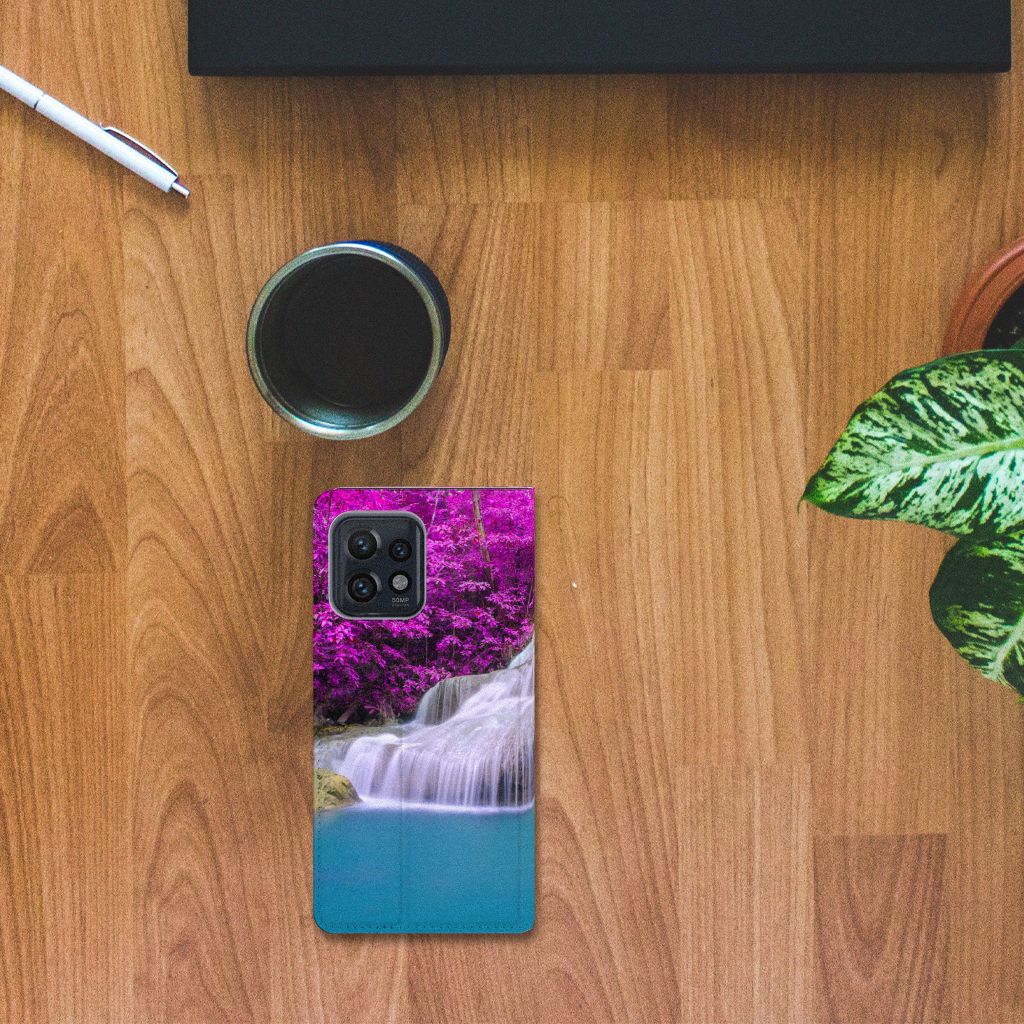 Van een waterval kun je een heel rustig gevoel krijgen, zeker als die op een Motorola Edge 40 Pro Book Cover staat dat jouw smartphone perfect beschermt tegen allerlei vormen van schade zoals krassen, barsten en scheuren. In de buurt van een waterval ben je tijdens warme zomerdagen niet alleen verzekerd van aangename verkoeling, het is ook een bijzonder rustgevende ervaring. Uit onderzoek blijkt zelfs dat watervallen een helend effect hebben op allerlei aandoeningen. Extra bijzonderheid aan de stand case vormen de paarse bossen op de achtergrond. Dit smartphonehoesje beschermt jouw telefoon aan alle zijden en beschikt over een opbergvakje voor pasjes en briefgeld. De case sluit perfect af dankzij de magneten van binnen. De houder aan de binnenzijde is van TPU. Alle zijden van het hoesje worden bedrukt. Een mooiere waterval met paarse achtergrond kom je op geen enkel ander hoesje tegen.