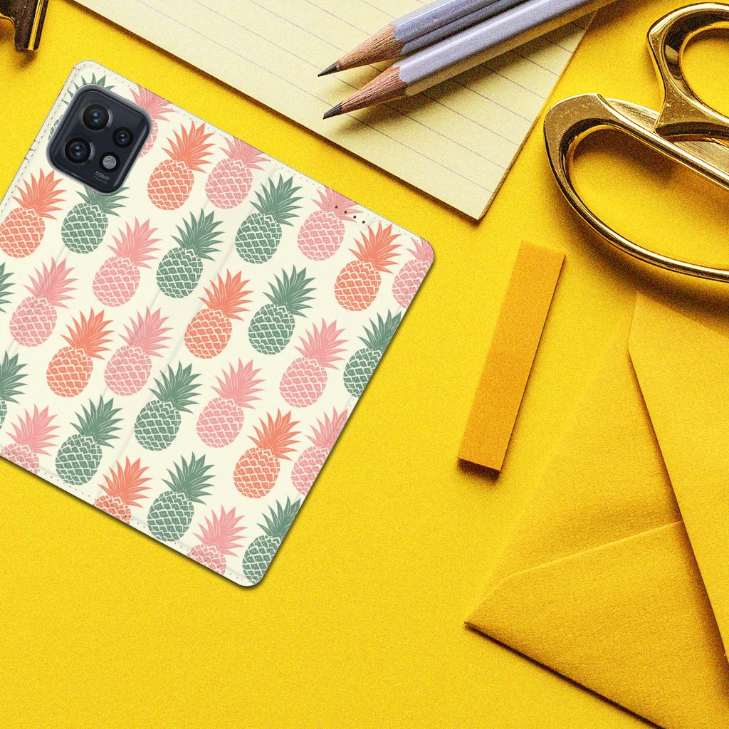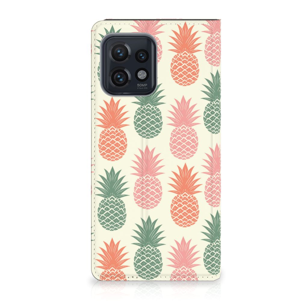 Ananas is een woord uit het Tupi, de taal van de Tupi-indianen, en betekent uitmuntende vrucht. Dit fruit van zeer hoge kwaliteit staat op onze superieure boekhoesjes, stand cases, hard cases en TPU cases. Jij blijft er gezond uitzien als je zo nu en dan een hap neemt van een Ananas , jouw smartphone blijft tip top in orde als je er een leuk telefoonhoesje omheen doet. Een ananas heeft stevig, veerkrachtig vruchtvlees. Een beetje te vergelijken met het TPU in onze hoesjes. TPU is elastisch materiaal, dat zeer buigzaam is. Vandaar dat het zeer schokbestendig is. Het ananas design staat op een stand case. Deze Motorola Edge 40 Pro Flip Style Cover beschermt jouw telefoon aan alle kanten en beschikt over een 1 opbergvakje en een speciale standaard. Het hoesje wordt afgesloten met een magneet aan de binnenzijde. De houder aan de binnenzijde is van TPU.