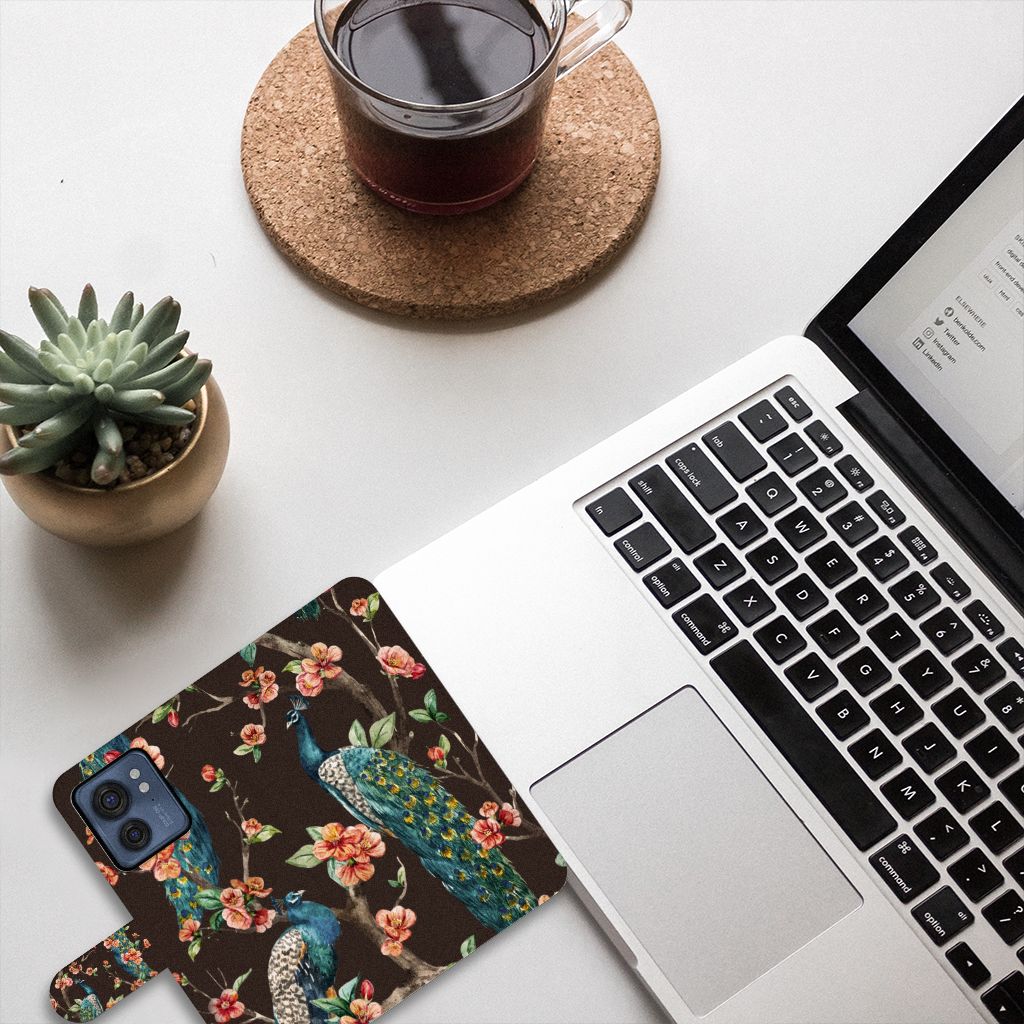 Motorola Edge 40 Telefoonhoesje sluit met magnetisch lipje Pauw | Bloemen