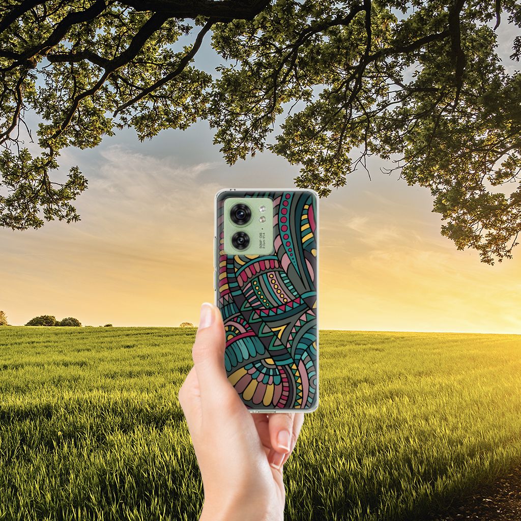 Voor de mensen die een beetje artistiek zijn, kunnen we een onderscheidende Motorola Edge 40 TPU bumper bedrukken met kleuren in een soort retro stijl. Je krijgt bijna een beetje een nostalgisch gevoel bij dit kunstzinnige design hoesje. De opdruk Aztec komt op de bovenzijde van de TPU case te staan, die zeer flexibel en praktisch is. Dit leuke hoesje in verschillende kleuren gaat nooit verloren en is net zo duurzaam als het gave patroon. De print wordt in ons eigen magazijn bedrukt. De case heeft alle nodige uitsparingen, zodat je alle knoppen en poorten simpel kunt bedienen. Het smartphonehoesje beschermt jouw telefoon vooral aan de achterzijde en zijkanten. Deze zijkanten worden overigens niet bedrukt. Met dit leuke hoesje in opvallende kleuren oogt jouw smartphone zeer modern maar grijp je toch een beetje terug naar het verleden.