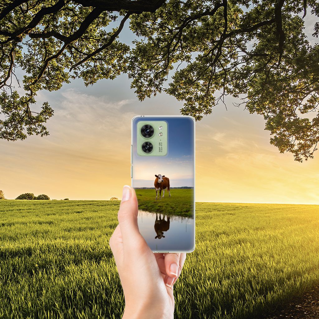 Het levert een idyllisch plaatje op, dit hoesje met een koe en ondergaande zon op de achtergrond. Door een koe buiten te laten lopen en grazen, hebben ze minder kans om ziek te worden. De Koe graast het liefst met soortgenoten, al zijn deze een stukje van de koe op de case verwijderd. Dit levert ook een mooi plaatje op, zoals je kunt zien op dit design hoesje. Dit tpu hoesje met koeien ziet er flexibel uit en is voorzien van alle uitsparingen. Een Motorola Edge 40 TPU Hoesje met koeien beschermt jouw smartphone vooral aan de achterkant en zijkanten. De zijkanten blijven transparant, de rest van het hoesje is bedrukt. Koeien herkauwen het liefst liggend, behalve wanneer het regent. Zo goed als grazen voelt voor koeien, zo duurzaam zal jouw smartphone blijven met dit design hoesje. Het TPU is schokabsorberend en niet te breken. De TPU case past altijd in je broekzak.