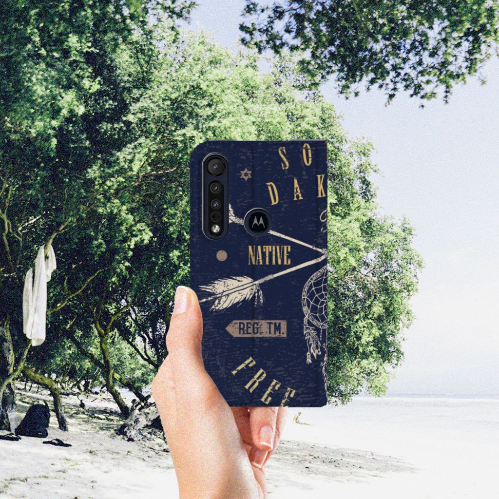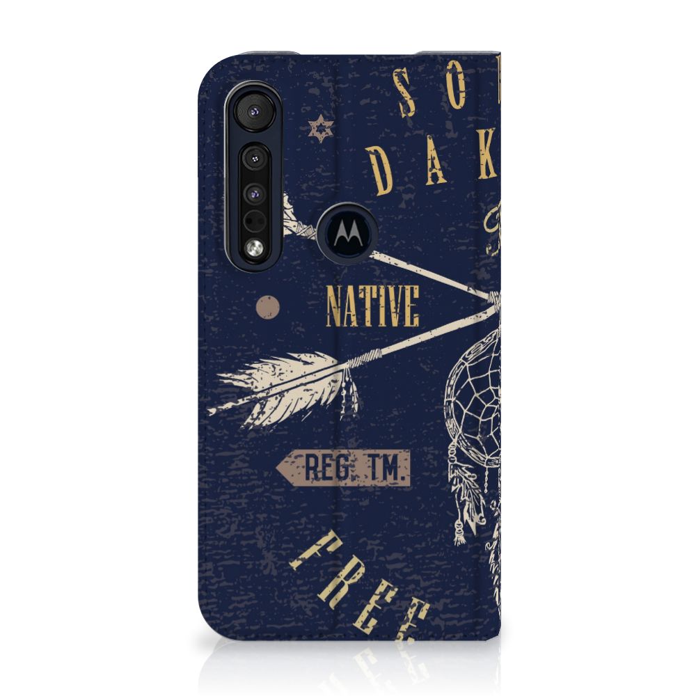 Het gebied dat nu South Dakota heet werd oorspronkelijk bevolkt door Indianenstammen, vandaar dat dit design hoesje er wellicht zo stoer uitziet. Het is ook nog eens zeer stevig. Stand cases bieden de allerbeste bescherming voor jouw smartphone, dit komt omdat ze jouw apparaat compleet afsluiten van invloeden van buitenaf. Alle zijden van een Motorola G8 Plus Book Cover worden bedrukt, pas nadat jij je bestelling hebt geplaatst. In het westen van South Dakota bevinden zich de Black Hills, hier is het wereldberoemde Mount Rushmore-monument te vinden. Wellicht dat dit ook nog eens op onze hoesjes komt te staan, voor nu moet je het doen met deze South Dakota print. De stand case heet niet voor niet zo. Het is een case met een standaard, voorzien van magnetische sluiting en een opbergvakje. Gecombineerd met de TPU houder aan de binnenkant, zorgt dit voor een perfecte bescherming van jouw telefoon.