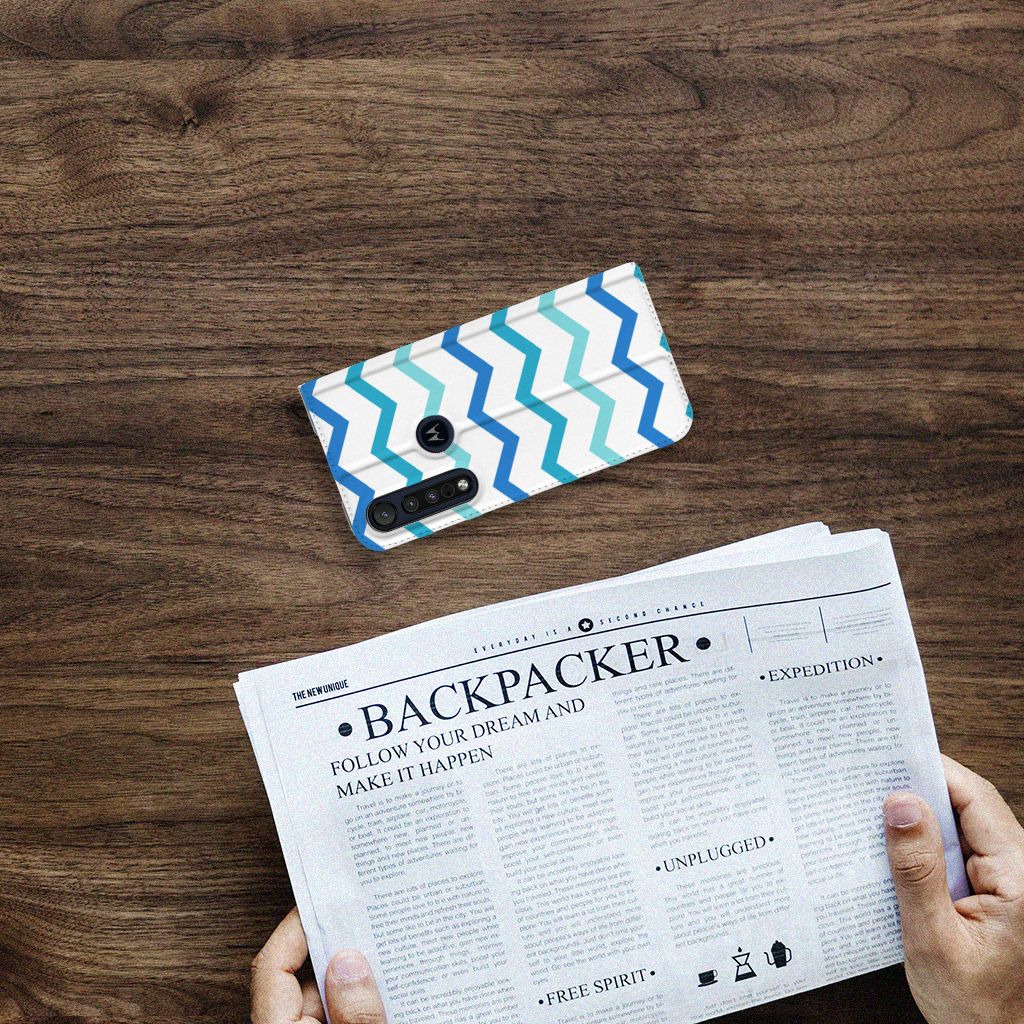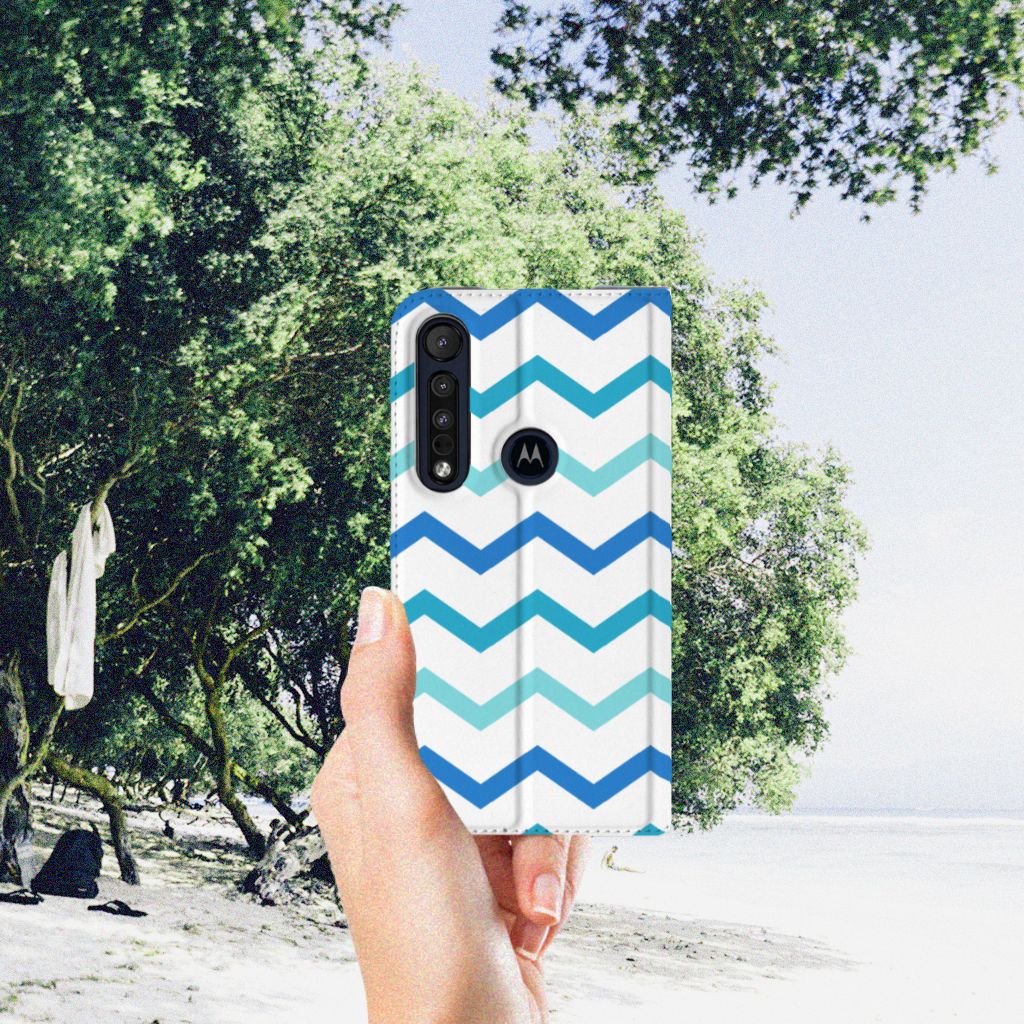 Dit zigzag blauwe design hoesje is speciaal ontworpen voor jou. We hebben bewust verschillende stijlen blauw gebruikt, zodat er voldoende sprake is van variatie. Dit blauwwitte Hoesje met Magneet ziet er super strak uit. Dat kan ook niet anders, als je weet dat onze zeer talentvolle designer er hoogstpersoonlijk voor verantwoordelijk is. Hij schudt wekelijks nieuwe designs uit zijn mouw en dit zigzag blauwe hoesje is een van zijn fraaiste creaties. Een heel dik design hoesje, al zeggen we het zelf. Valt dit blauwwitte design hoesje goed bij jou? Bestel het dan vandaag nog en je hebt het morgen in huis. Het design staat op een stand case. Deze case beschermt jouw Motorola G8 Plus aan alle kanten en beschikt over een 1 opbergvakje en een speciale standaard. Het hoesje wordt afgesloten met een magneet aan de binnenzijde. De houder aan de binnenzijde is van TPU. Alle zijden van de stand case worden bedrukt.