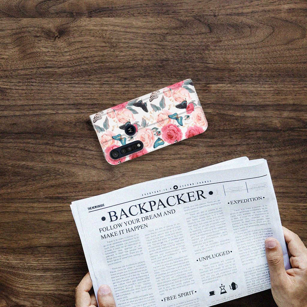 Ben je op zoek naar een uniek telefoonhoesje voor je Motorola G8 Plus? Dan ben je bij B2C Telecom aan het juiste adres! Speciaal voor jou hebben we dit prachtige Butterfly Roses design in onze collectie hoesjes opgenomen. Het design wordt bedrukt op een Smart Cover en heeft een vakje aan de binnenkant voor een pasje. Het fijne aan dit hoesje is dat je het als standaard neer kunt zetten. Hierdoor geniet je nog meer als je een filmpje aan het kijken bent op je telefoon. Het hoesje wordt afgesloten door magneten aan de binnenkant. Wil je dit design hoesje nog iets extra's geven? Voeg dan gratis je naam of een quote toe! Is dit design hoesje toch niet helemaal wat je zocht? Ontwerp dan zelf een hoesje in ons ontwerpprogramma.