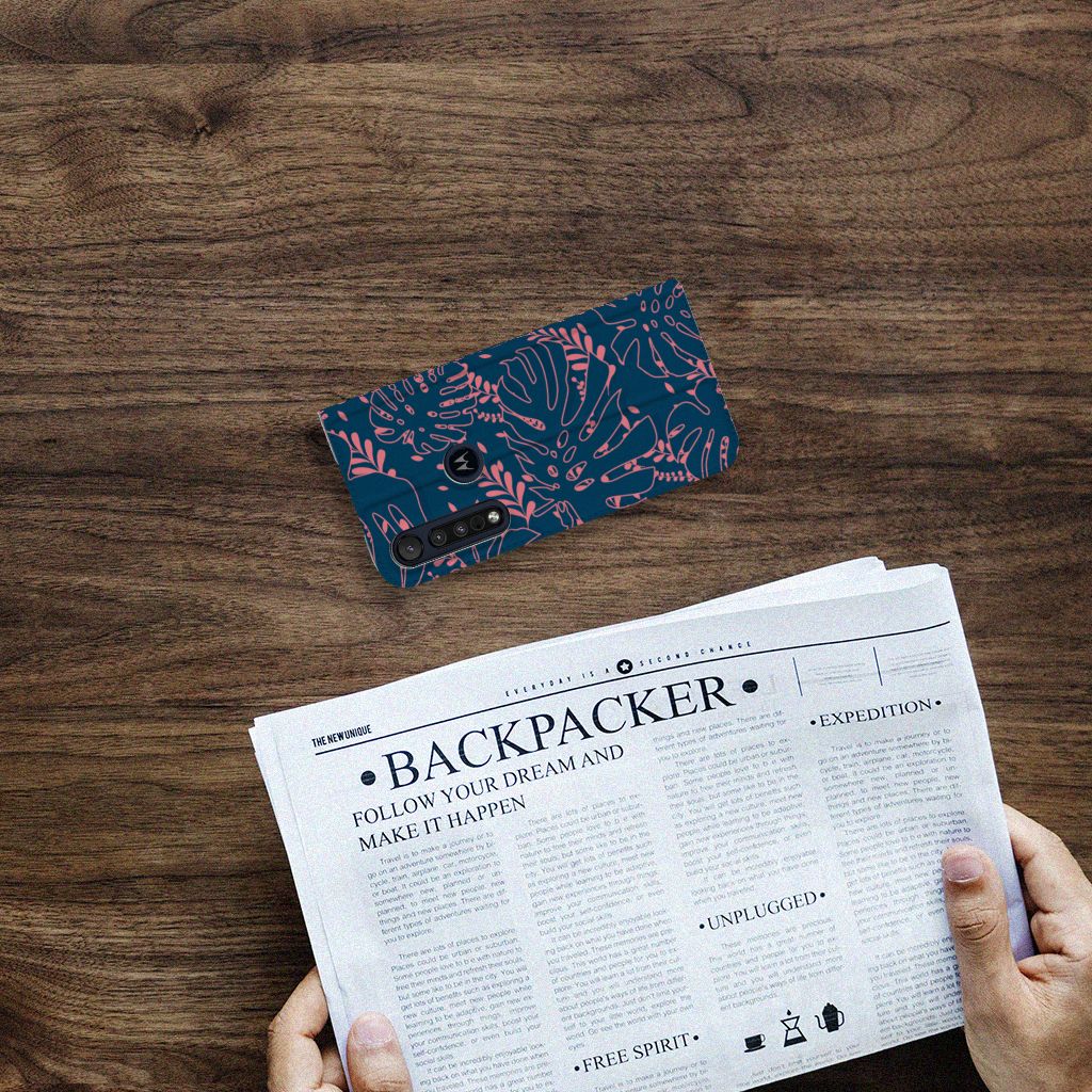 Je voelt je verbonden met de natuur als je kiest voor deze Motorola G8 Plus Smart Cover met print van roze bladeren op een blauwe achtergrond. De print bestaat uit verschillende roze bladeren en dit zorgt voor een fraai decoratief geheel. Met dit patroon van roze bladeren op een blauwe achtergrond creëer je een opvallende uitstraling voor jouw smartphone. Jij doet er verstandig aan om je telefoon te beschermen met dit design hoesje met roze bladeren op een blauwe achtergrond, die staan op een stand case. Dit hoesje kenmerkt zich onder meer door het handige vakje aan de binnenzijde en de magnetische sluiting aan de binnenzijde. Voel jij jezelf happy bij een beeld van roze bladeren op een blauwe achtergrond, dan is deze stand case met print een uitstekende optie. Het beschermt jouw telefoon aan alle zijden. Het TPU aan de binnenzijde klemt zich perfect om jouw smartphone.