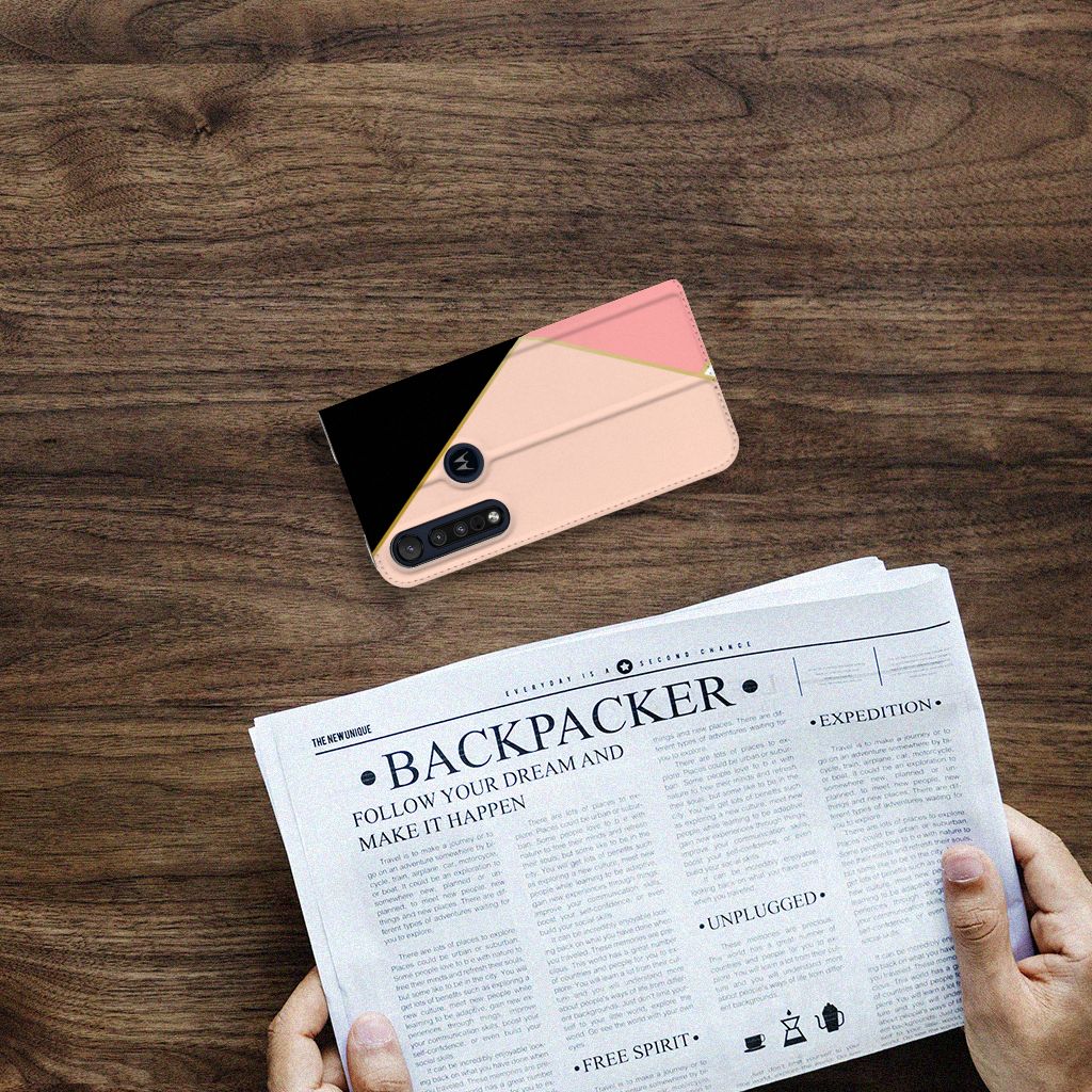 Motorola G8 Plus Print Stand Case Zwart Roze Vormen