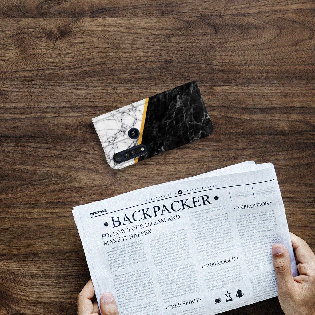 Motorola G8 Plus Standcase Marmer Wit Zwart - Origineel Cadeau Man