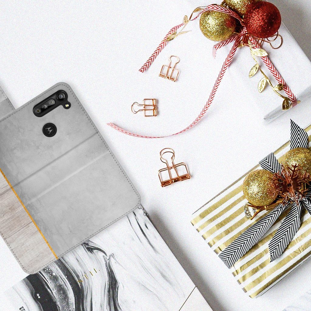 Motorola G8 Power Bookstyle Case met pasjes Wood Concrete