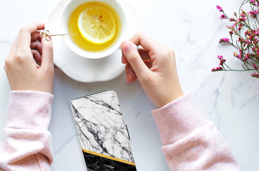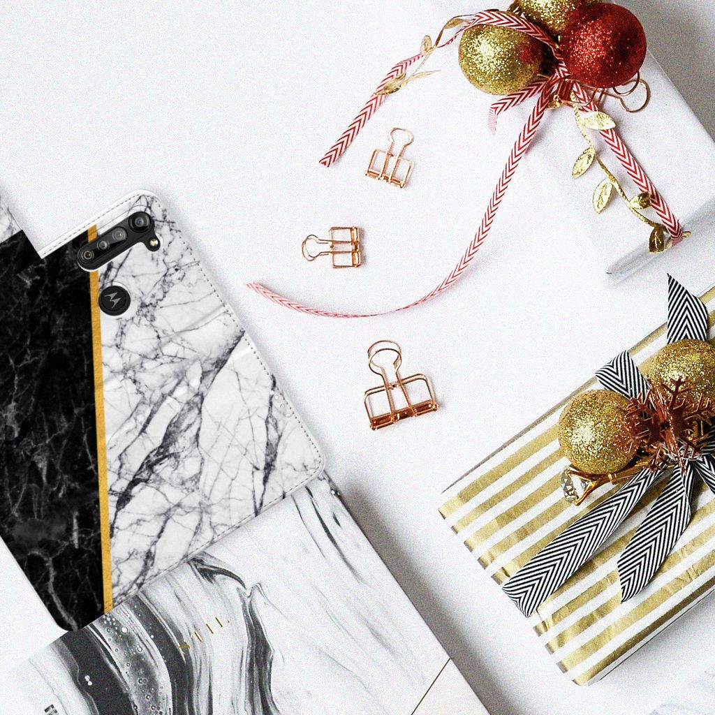 Bookcase Motorola G8 Power Marmer Wit Zwart