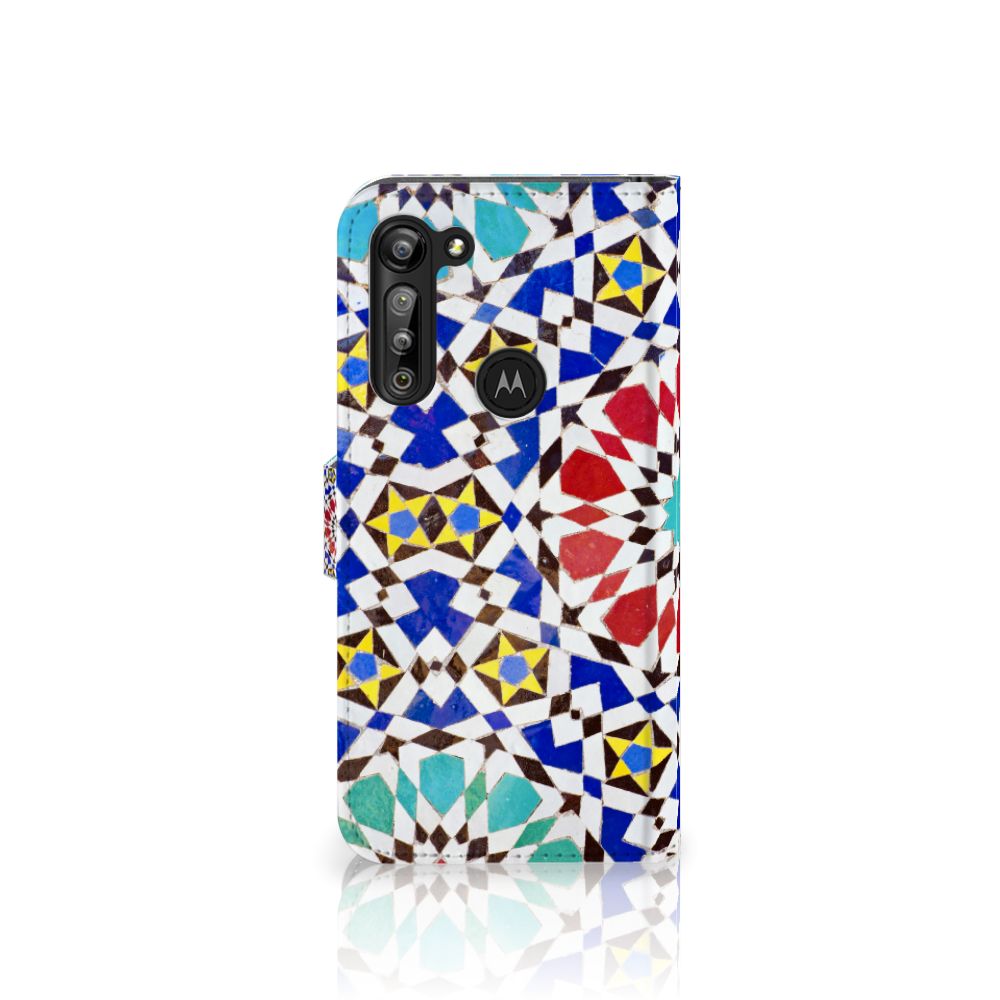 Aan design hoesjes met kunstvormen geen gebrek in onze uitgebreide collectie. Wat dacht je van dit design hoesje met Mozaïek . Dit is een kunstvorm waarbij een grote afbeelding wordt gemaakt uit een groot aantal kleine gekleurde steentjes (tesserae), die in een vloer of wand worden gemetseld. Deze gekleurde steentjes zie je terug op dit boekhoesje met design van mozaïek. Een boekhoesje is zo’n beetje de veiligste case die er bestaat. Een Motorola G8 Power Bookcase met print zorgt voor een volledige bescherming van je smartphone en wordt aan alle zijden bedrukt met mozaïek. Een deel van de foto’s staat ook op het lipje aan de buitenzijde. Verder is de houder aan de binnenzijde van TPU. De Grieken en Romeinen beheersten de kunst al. Op diverse plaatsen in Europa zijn mozaïeken teruggevonden die tot op de dag van vandaag goed bewaard zijn gebleven. Met een hoesje met mozaïek blijft jouw telefoon in tact. Je pasjes en briefgeld kun je in de vakjes aan de binnenzijde stoppen