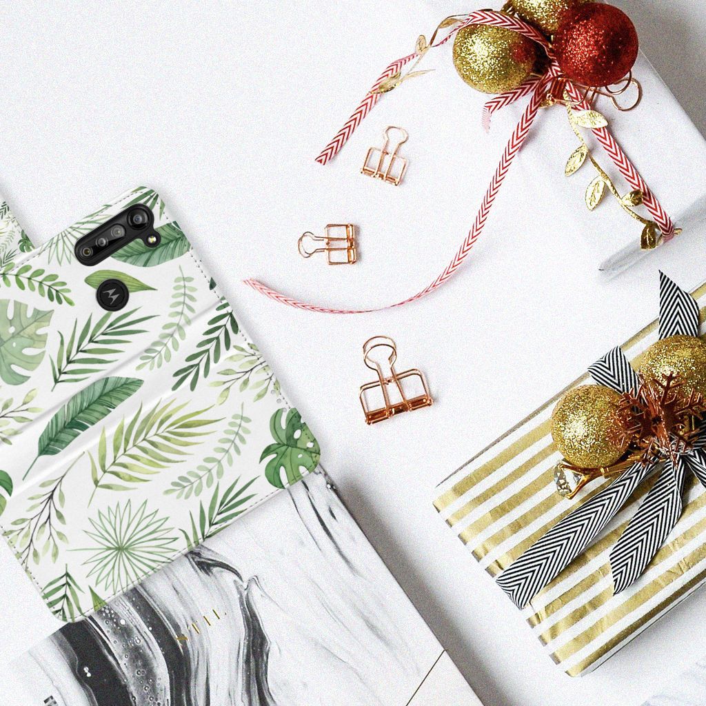 Motorola G8 Power Hoesje met ruimte voor pasjes Leaves