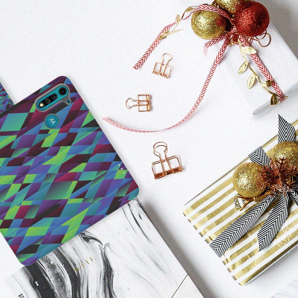 Motorola G8 Power Lite Book Case Zwart Roze Vormen