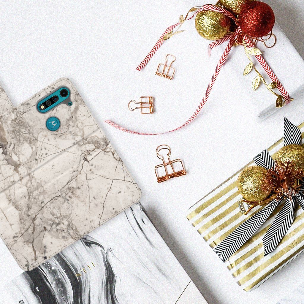 Motorola G8 Power Lite Bookcase met pasjes Marmer Beige