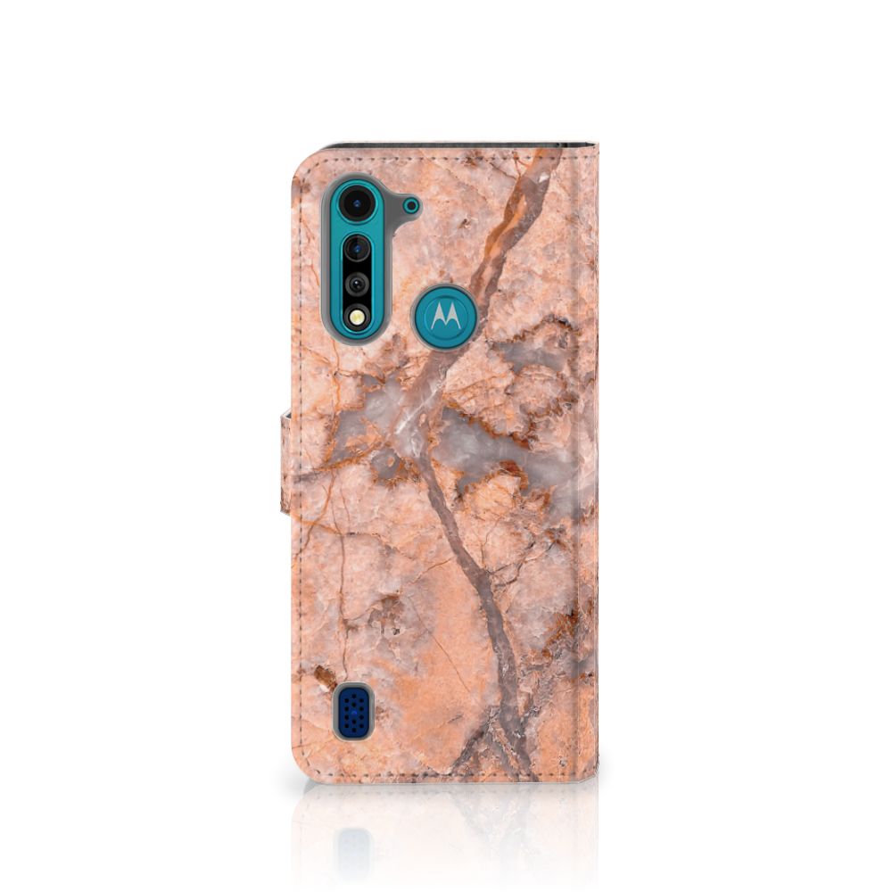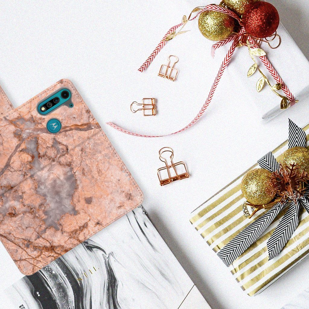Motorola G8 Power Lite Bookcase met pasjes Marmer Oranje