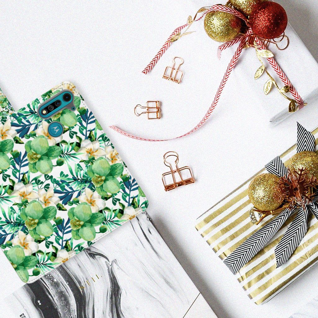 Motorola G8 Power Lite Hoesje met ruimte voor drie pasjes Orchidee Groen
