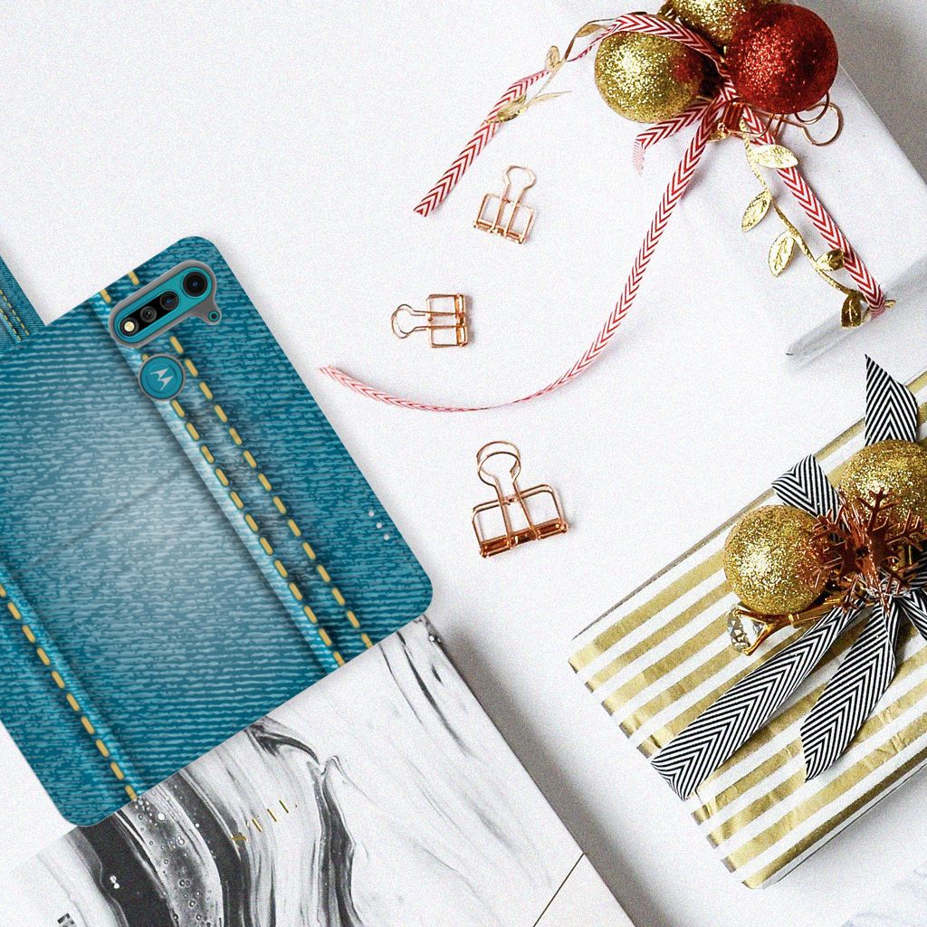 Motorola G8 Power Lite Walletcase gemaakt van TPU-siliconen en kunstleer Jeans