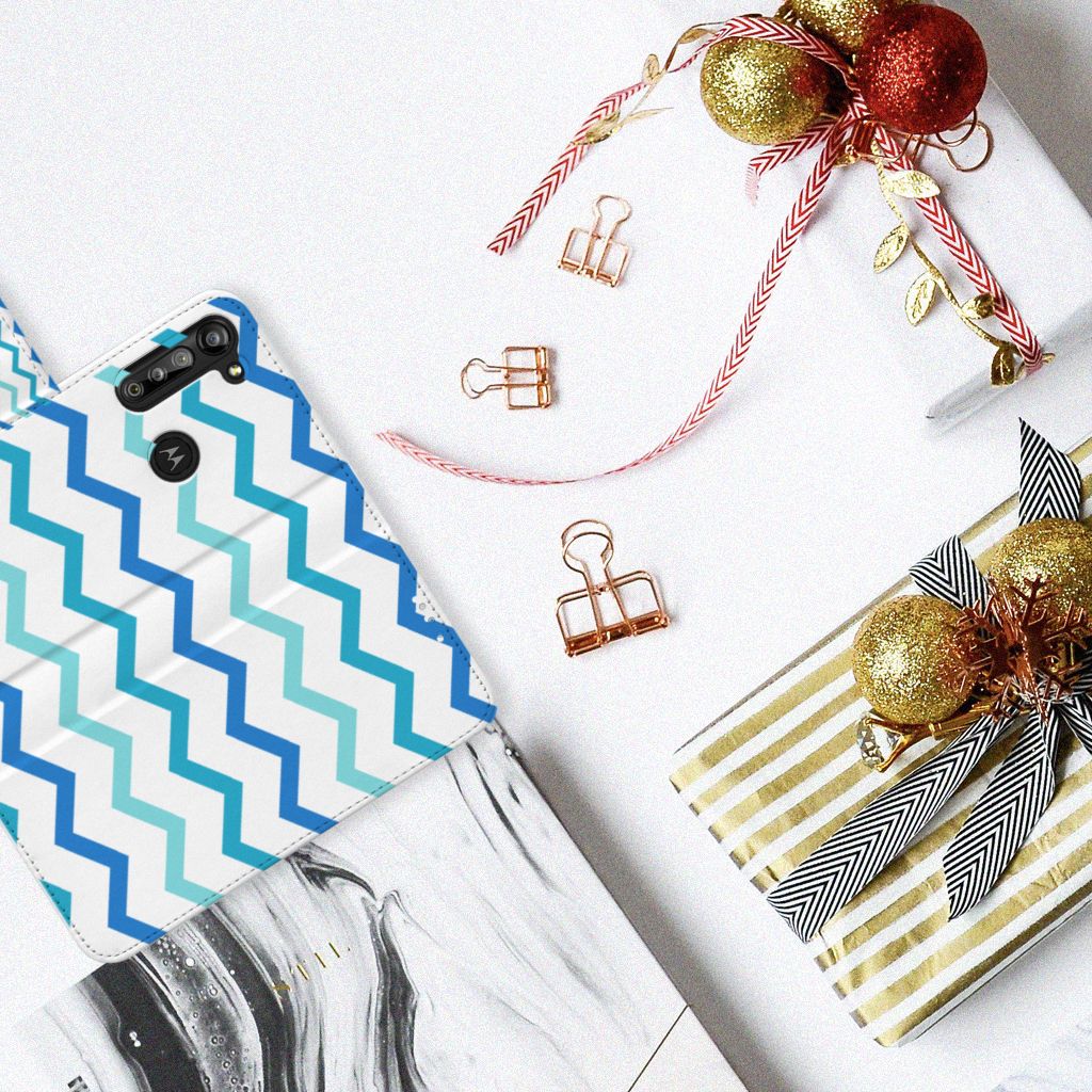 Dit zigzag blauwe design hoesje is speciaal ontworpen voor jou. We hebben bewust verschillende stijlen blauw gebruikt, zodat er voldoende sprake is van variatie. Dit blauwwitte Telefoon Hoesje ziet er super strak uit. Dat kan ook niet anders, als je weet dat onze zeer talentvolle designer er hoogstpersoonlijk voor verantwoordelijk is. Hij schudt wekelijks nieuwe designs uit zijn mouw en dit zigzag blauwe hoesje is een van zijn fraaiste creaties. Een heel dik design hoesje, al zeggen we het zelf. Valt dit blauwwitte design hoesje goed bij jou? Bestel het dan vandaag nog en je hebt het morgen in huis. Het design staat op een boekhoesje. Dit smartphonehoesje beschermt jouw Motorola G8 Power aan alle zijden en beschikt over verschillende opbergvakjes voor pasjes en briefgeld. De case sluit perfect af met het lipje aan de buitenkant. De houder aan de binnenzijde is van TPU. Alle zijden van het hoesje worden bedrukt, inclusief het lipje.
