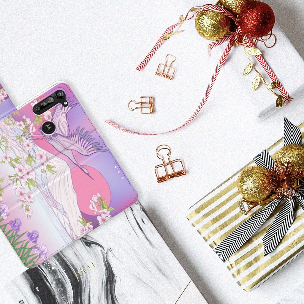 Met dit opvallende en kleurrijke Motorola G8 Power Telefoonhoesje met Pasjes met Bird Flying design blijft jouw toestel in uitzonderlijke staat. Een ooievaar fleurt al sinds mensenheugenis dorpen en steden op en doet dit ook met jouw boekhoesje. Het design hoesje met deze reigerachtige vogel in roze en paarse kleuren is een zeer goede bescherming voor je telefoon. Het spetterende boekhoesje met opvallende ooievaar beschermt jouw telefoon aan alle zijden en beschikt over verschillende opbergvakjes voor pasjes en briefgeld. De roze met paarse case sluit perfect af met het lipje aan de buitenkant. De houder aan de binnenzijde van het schitterende boekhoesje is van TPU. Dit is ook nog eens zeer flexibel materiaal. Het pu leer aan de buitenkant oogt zeer chique. Kijk voor andere dieren op een design hoesje binnen deze fraaie collectie. Ook kun je zelf een hoesje ontwerpen met je favoriete huisdier.