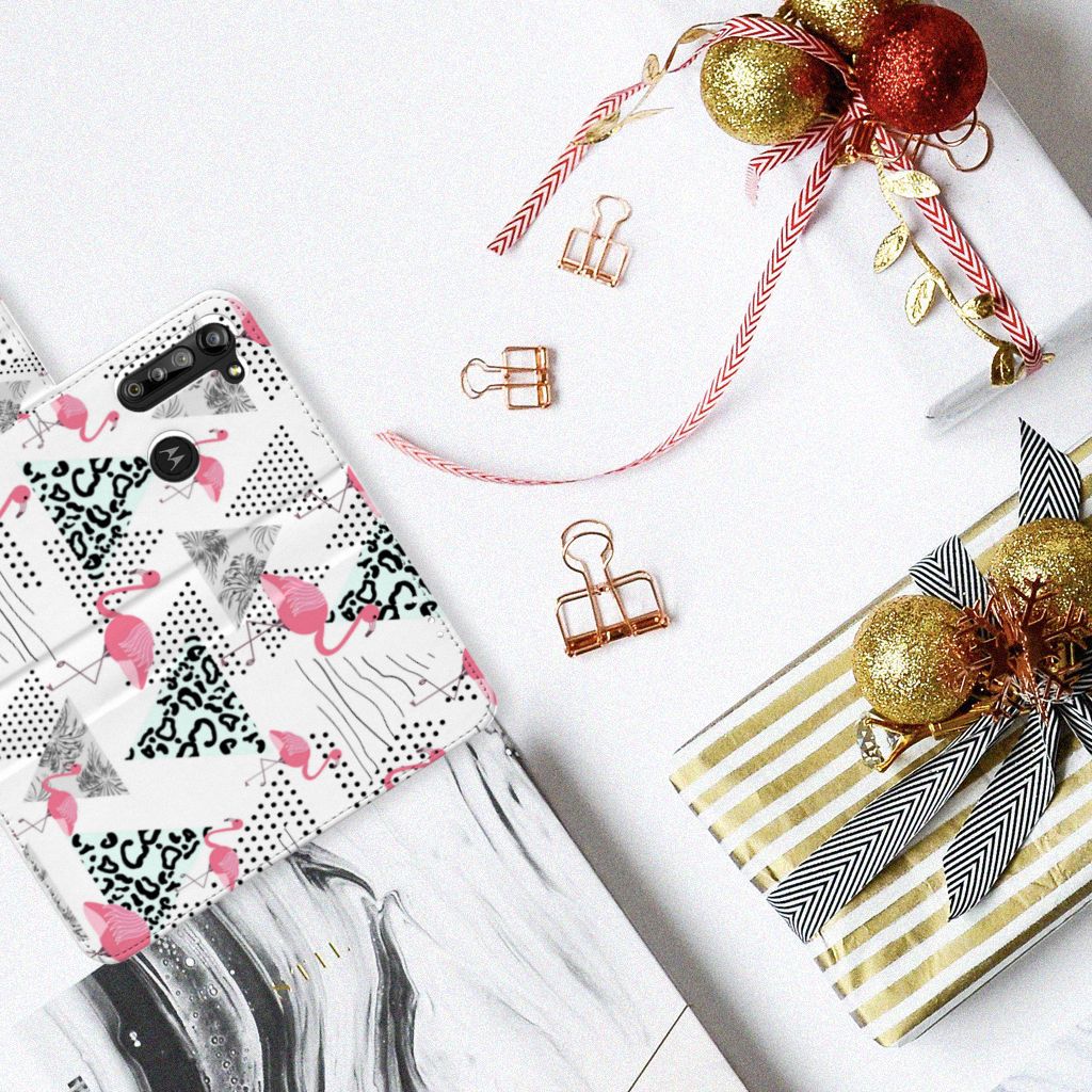 Motorola G8 Power Telefoonhoesje met magnetische lipje als sluiting Flamingo Triangle