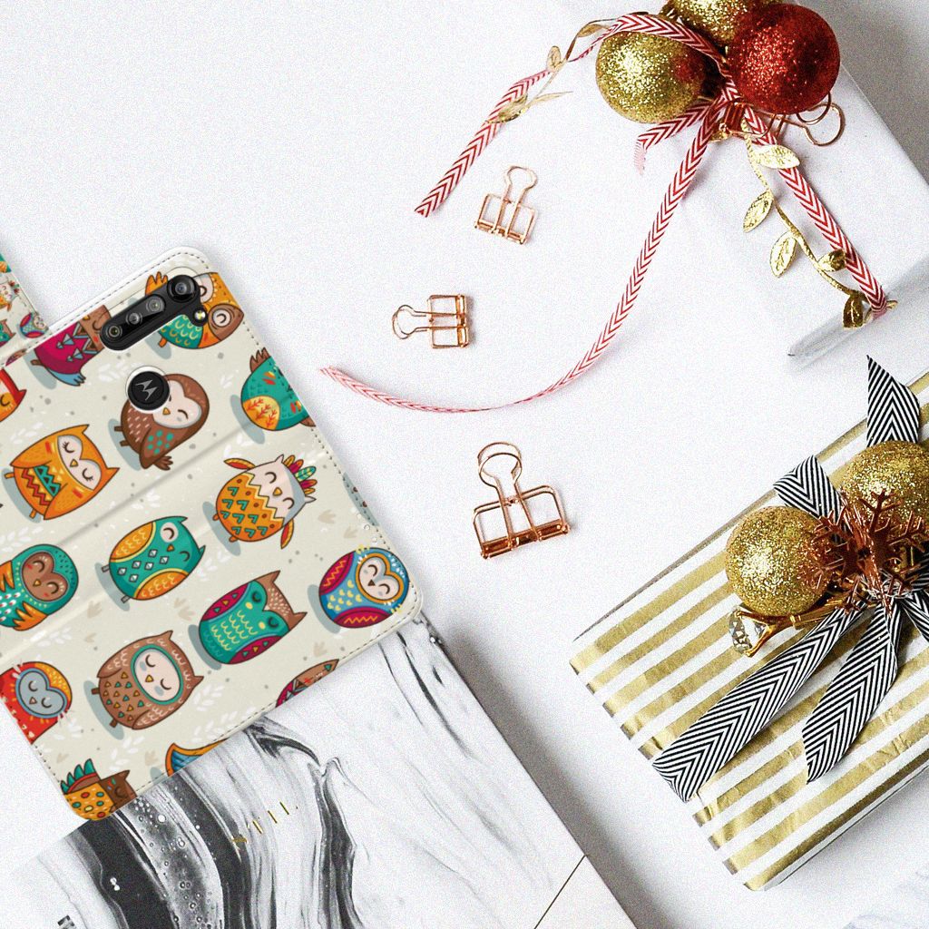 Motorola G8 Power Telefoonhoesje met ruimte voor drie pasjes Vrolijke Uilen