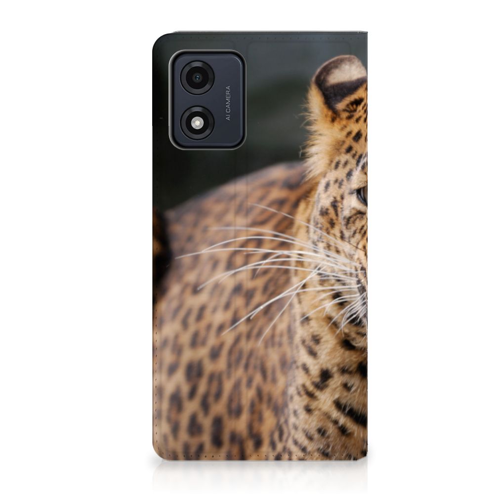 Het luipaard wordt ook wel een panter genoemd en is een sluwe kat. De bruingele vacht met een patroon van rozetachtige vlekken geeft een goede schutkleur. Dit zie je ook op een fraaie manier afgebeeld op dit super stoere hoesje. Mensen die indruk willen maken kopen deze stand case met design van het luipaard. Een Motorola Moto E13 4G Hoesje maken is van alle markten thuis. Het is praktisch – vanwege onder meer het opbergvakje en de magnetische sluiting aan de binnenzijde – maar beschermt jouw smartphone tevens beter dan welke case ook. Het luipaard is sterk en behendig en misschien typeert jou dat ook wel. Dan past dit hoesje met luipaard uitstekend bij jou. De houder van TPU aan de binnenzijde is net zo sterk als het luipaard. Jouw telefoon is perfect beschermd. De case heeft tevens een standaard.