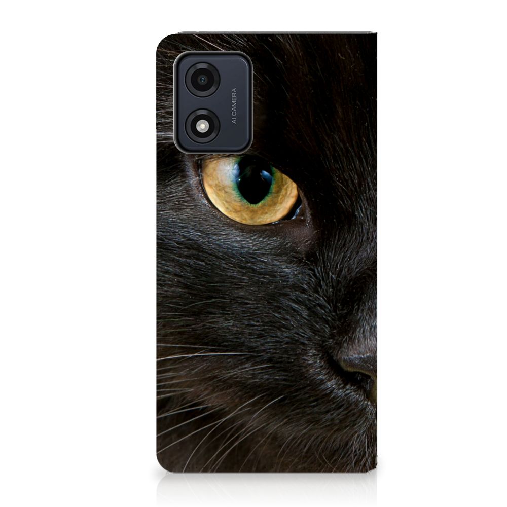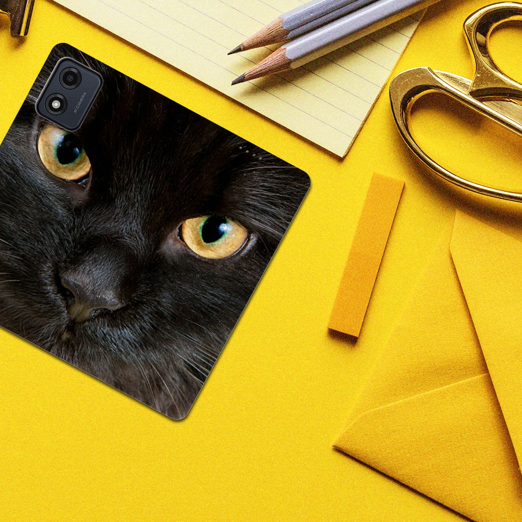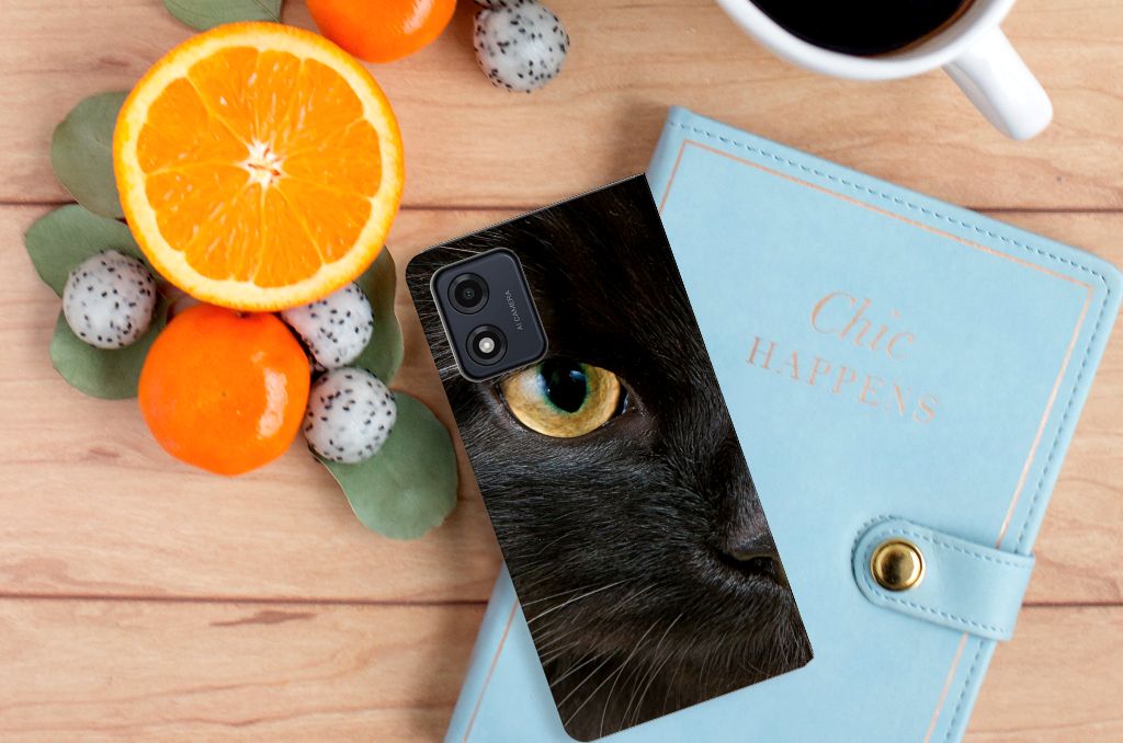 warte katten zijn heel speciaal, vandaar we een exemplaar op een design hoesje hebben gezet. Een zwarte kat schijnt bijvoorbeeld veel beter te kunnen horen dan witte katten. Deze zwarte kat staat op zeer prominente wijze op een stand case. Een Motorola Moto E13 4G Hoesje maken met zwarte kat beschermt jouw smartphone aan alle zijden en wordt ook volledig bedrukt. De stand case met zwarte kat ziet er geweldig uit en is voorzien van verschillende uitsparingen en een speciale standaard. Alle zijden van de case zijn bedrukt. Dit design hoesje is van TPU aan de binnenzijde en zeer flexibel. Verder heeft de case een houder voor een pasje.