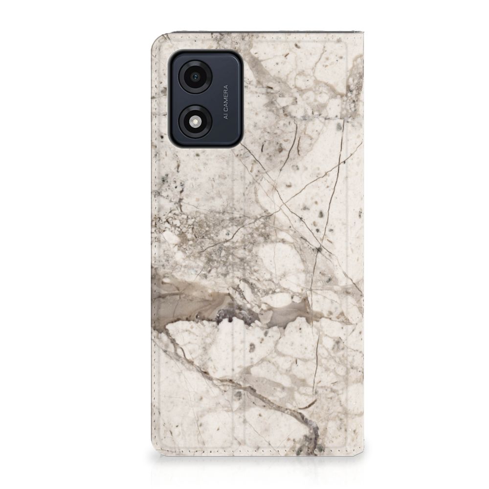 Dit design hoesje met Marmer Beige is voor de artistieke personen onder ons. De Grieken en Romeinen wisten het steen al te waarderen door het als bouw- en bekledingsmateriaal toe te passen. Naast het witte Carrara marmer met haar zacht grijze geaderde belijning zijn de diverse marmersoorten in een ruim kleurenpallet te krijgen. We hebben verschillende kleuren op design hoesjes gezet, zoals in dit geval beige marmer. Dit is een Motorola Moto E13 4G Standcase met marmer in beige kleur. Het marmer wordt bedrukt op alle zijden van een stand case, die beschikt over 1 vakje voor een pasje en toebehoren en een magnetische sluiting aan de binnenkant. Verder heeft de case een houder van TPU. De rijkheid aan kleuren en varianties in afwerking geeft designers de vrijheid om met marmer hele mooie architectonische projecten te realiseren. Wij hebben onze designer ook veel vrijheid gegeven. Het resultaat zie je terug in deze stand case met beige marmer, dat de ideale bescherming voor jouw smartphone biedt.