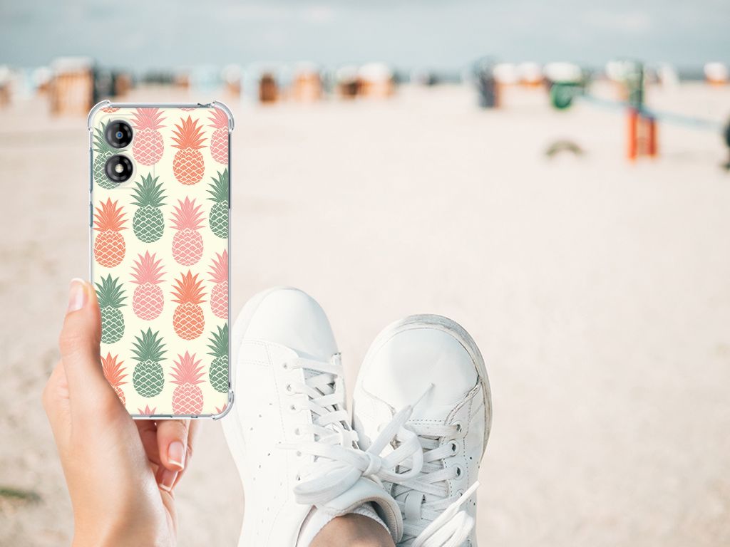 Ben je op zoek naar een uniek telefoonhoesje voor je Motorola Moto E13? Dan ben je bij B2C Telecom aan het juiste adres! Speciaal voor jou hebben we dit prachtige Ananas design in onze collectie hoesjes opgenomen. Het design wordt bedrukt op een Beschermhoes en is gemaakt van flexibel rubber. Het hoesje is perfect voor de actieve smartphonegebruiker door de opstaande randen/hoeken. Denk aan mensen die veel sporten, reizen of wandelen en net iets meer zekerheid willen als het op hun geliefde telefoon aankomt. Het design wordt alleen aan de bovenkant van het hoesje bedrukt en de randen blijven transparant. Aan de zijkanten zijn uitsparingen gemaakt waardoor je met gemak alle knoppen en poorten kunt bedienen. Wij adviseren om dit hoesje in combinatie met een screenprotector te gebruiken voor een langere levensduur van je telefoon. Wil je dit hoesje nog iets extra's geven? Voeg dan gratis je naam of een quote toe! Is dit design hoesje toch niet helemaal wat je zocht? Ontwerp dan zelf een hoesje in ons ontwerpprogramma.